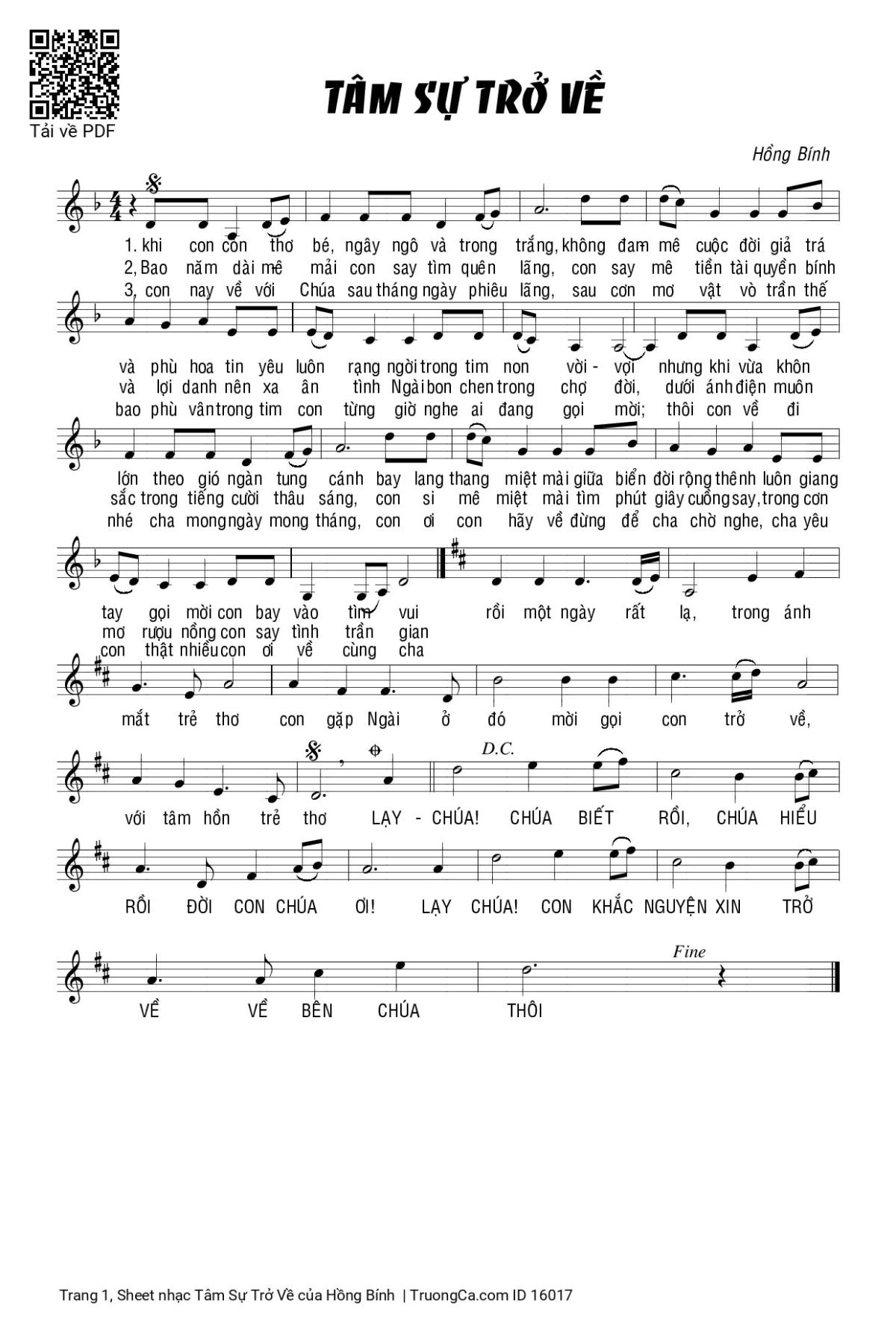 Transposition is the process of moving a song's melody and chords up or down in pitch by a constant interval. The direction of the transposition tool is indicated by a plus (+) sign for up and a minus (-) sign for down. Hover mouse over chords signs to see the chords chart of Tâm Sự Trở Về song.