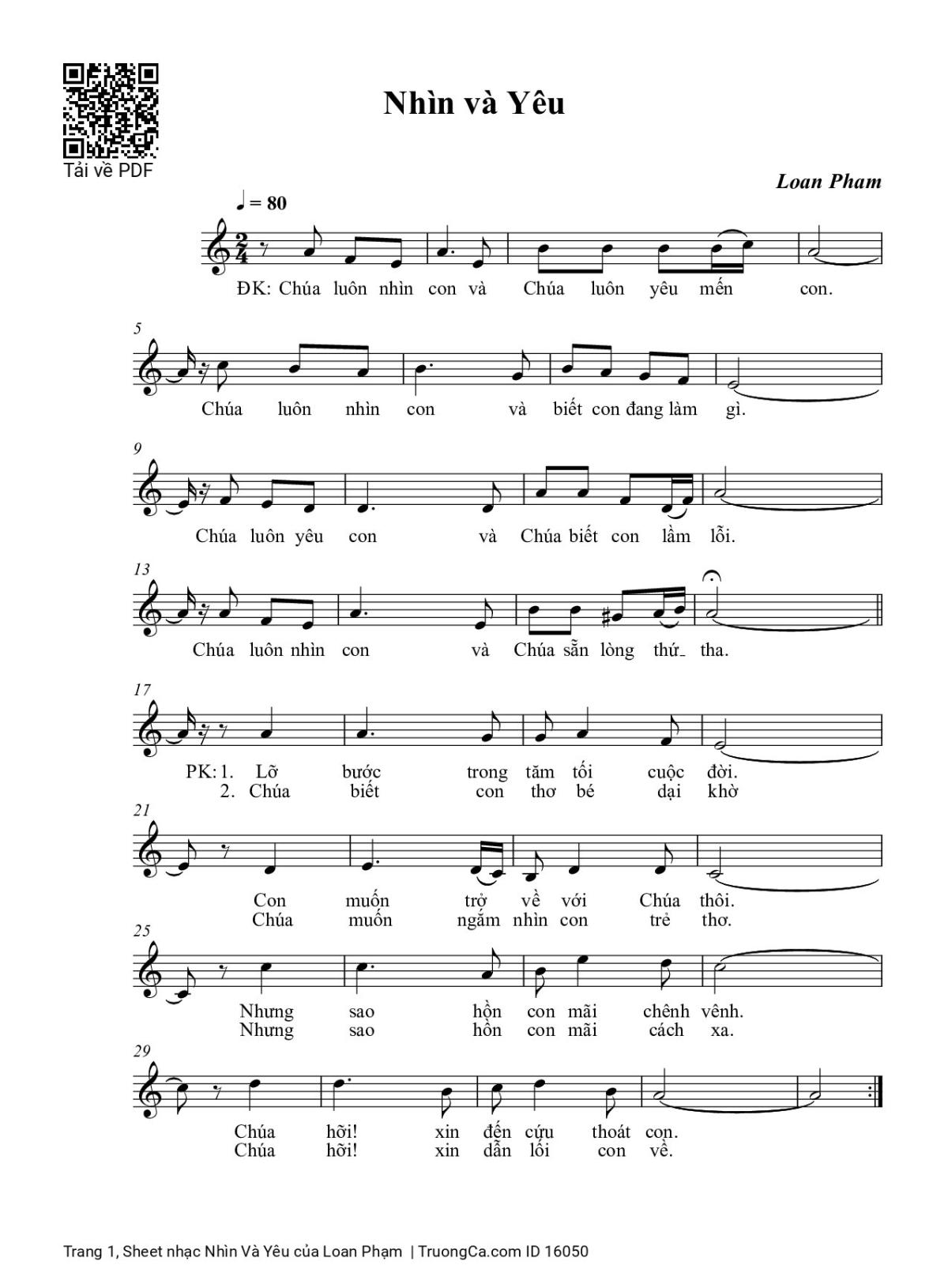 Điệp khúc: Chúa luôn nhìn con và Chúa luôn yêu mến con.