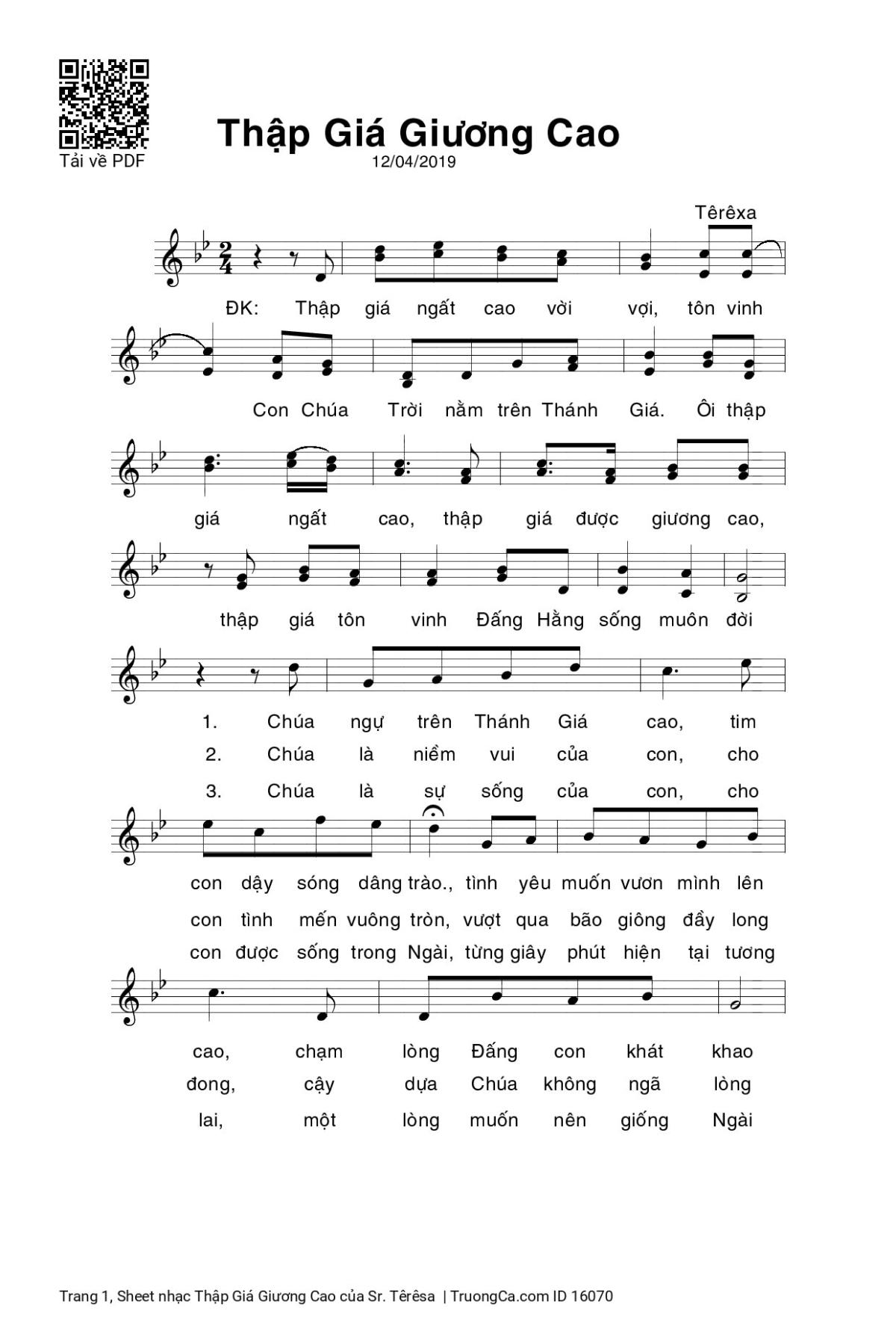 Điệp khúc. Thập giá ngất cao vời vợi, tôn vinh Con Chúa Trời năm trên Thánh Giá. Ôi thập giá ngất cao, thập giá được giương cao, thập giá tôn vinh Đấng Hằng Sống muôn đời.