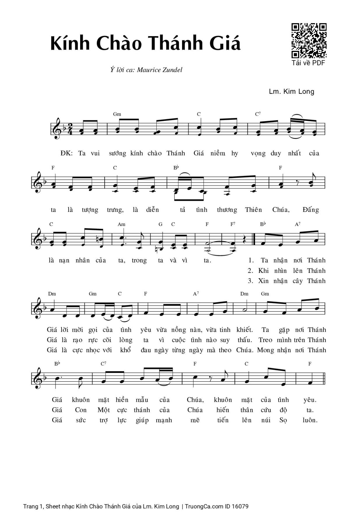 Transposition is the process of moving a song's melody and chords up or down in pitch by a constant interval. The direction of the transposition tool is indicated by a plus (+) sign for up and a minus (-) sign for down. Hover mouse over chords signs to see the chords chart of Kính Chào Thánh Giá song.