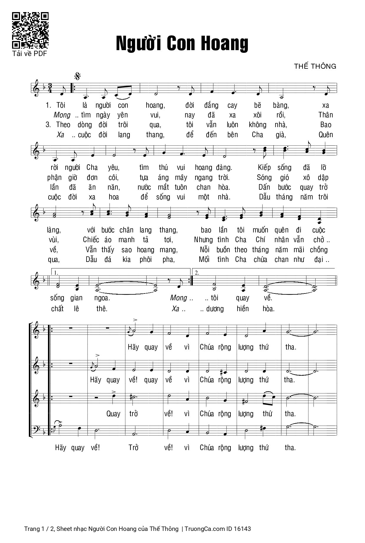 1. Tôi là người con hoang đời đắng cay bẽ bàng, xa rời người Cha yêu tìm thú vui hoang đàng. Kiếp sống đã lỡ làng vui bước chân lang thang, bao lần tôi muốn quên đi cuộc sống gian ngoa.