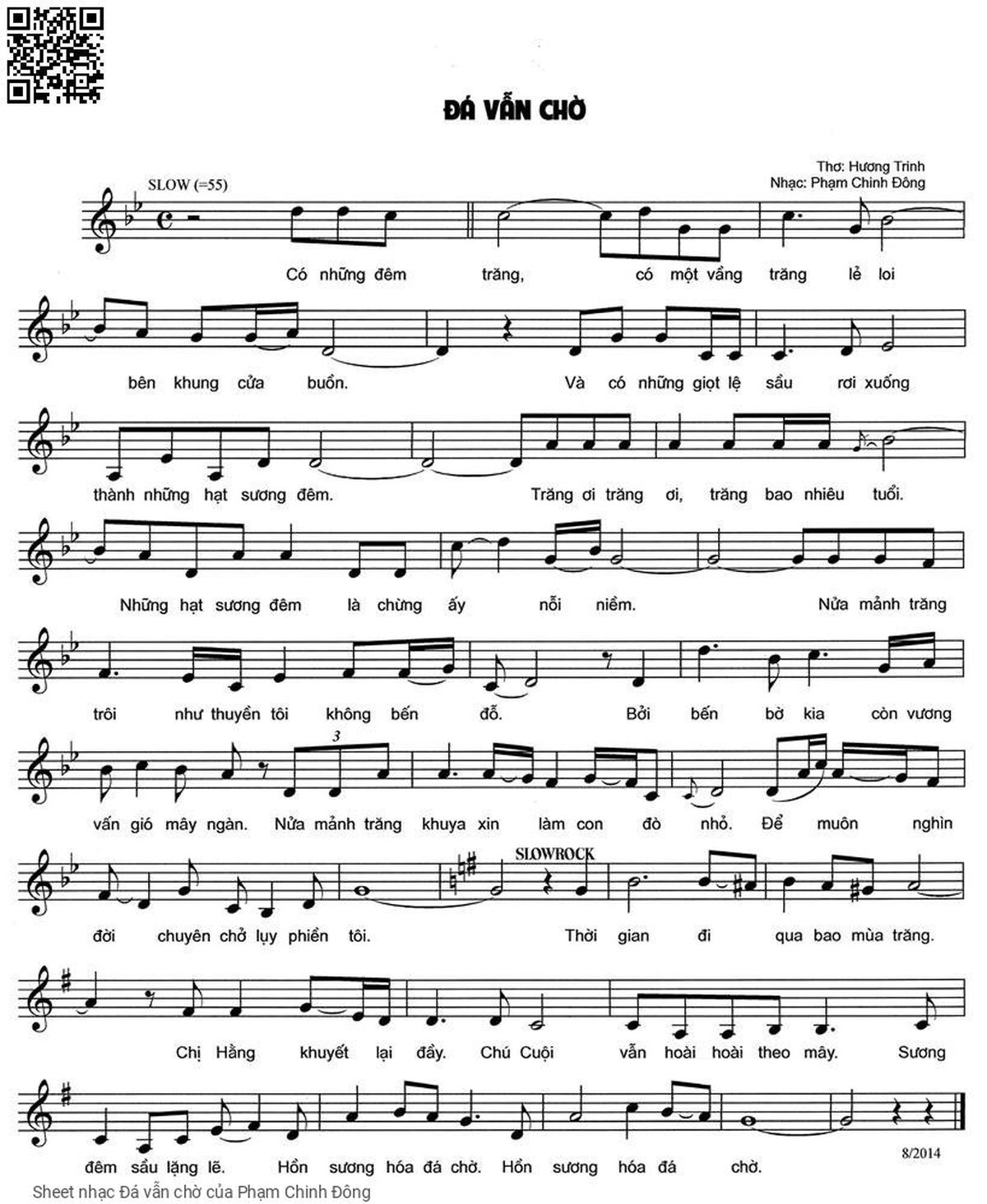 Transposition is the process of moving a song's melody and chords up or down in pitch by a constant interval. The direction of the transposition tool is indicated by a plus (+) sign for up and a minus (-) sign for down. Hover mouse over chords signs to see the chords chart of Đá vẫn chờ song.