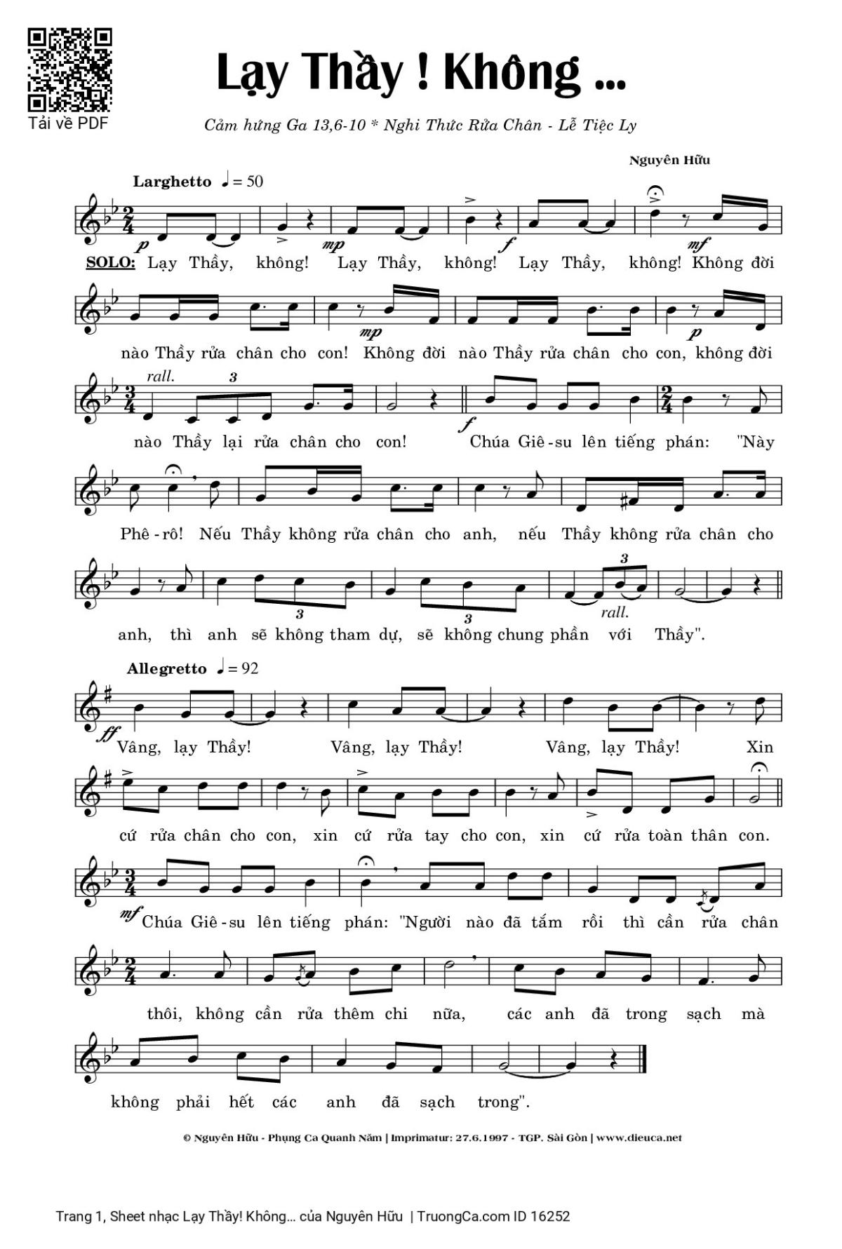 Lạy Thầy, không! Lạy Thầy, không! Lạy Thầy, không! Không đời nào Thầy rửa chân cho con! Không đời nào Thầy rửa chân cho con, không đời nào Thầy lại rửa chân cho con! Chúa Giê-su lên tiếng phán: "Này Phê-rô! Nếu Thầy không rửa chân cho anh, nếu Thầy không rửa chân cho anh, thì anh sẽ không tham dự, sẽ không chung phần với Thầy".