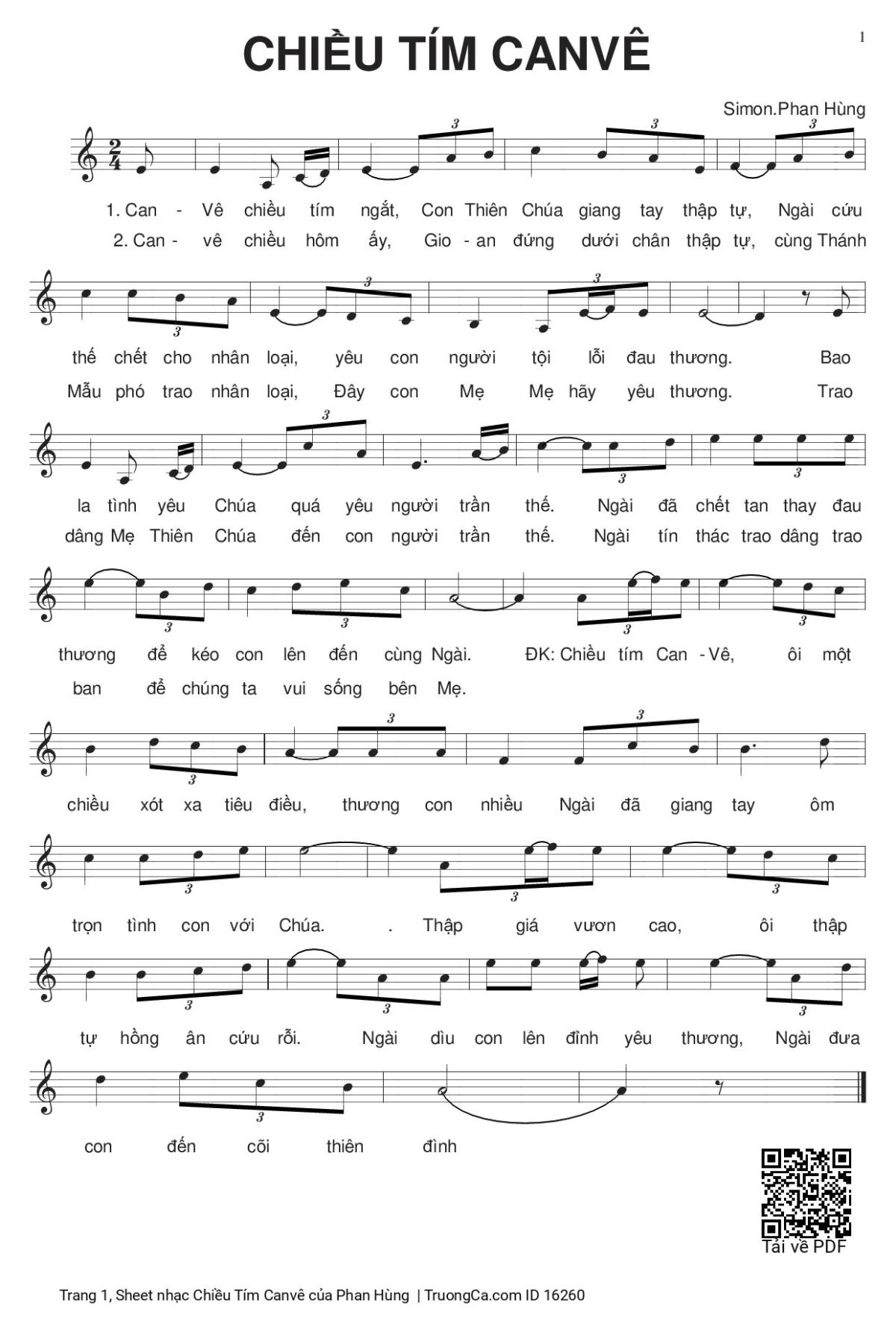 Điệp khúc. Chiều tím Canvê, ôi một chiều xót xa tiêu điều, thương con nhiều Ngài đã giang tay ôm trọn tình con với Chúa. Thập giá vươn cao, ôi thập tự hồng ân cứu rỗi. Ngài dìu con lên đỉnh yêu thương, Ngài đưa con đến cõi thiên đình.