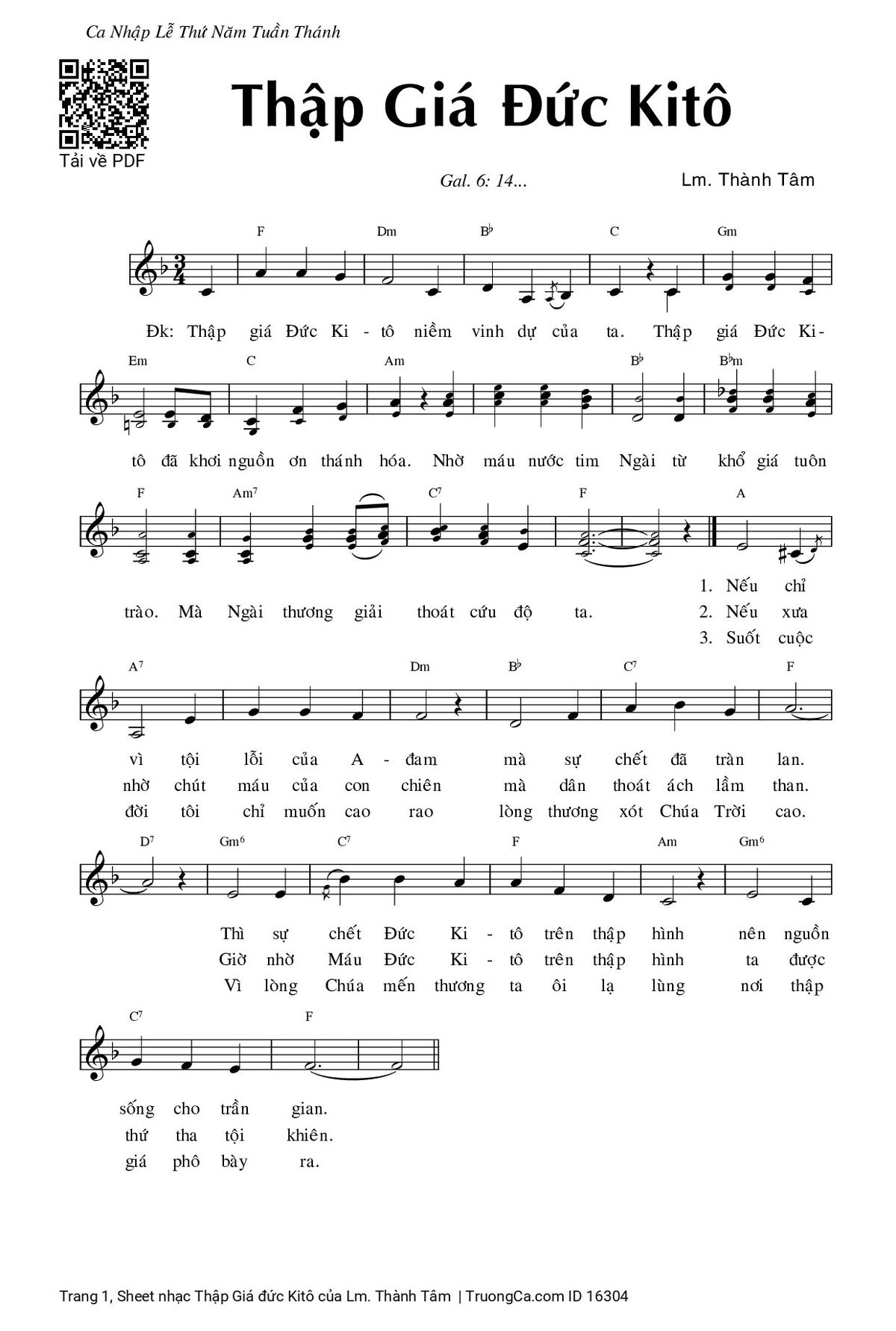 Sheet PDF with the same name Thập Giá đức Kitô: