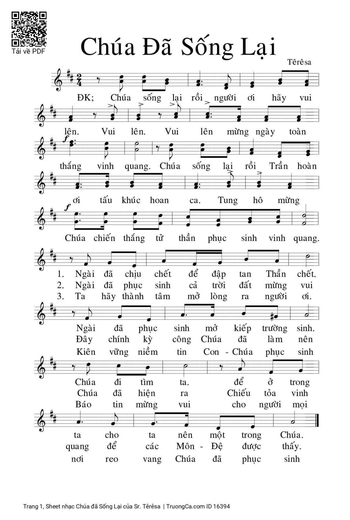 Sheet PDF with the same name Chúa đã Sống Lại:
