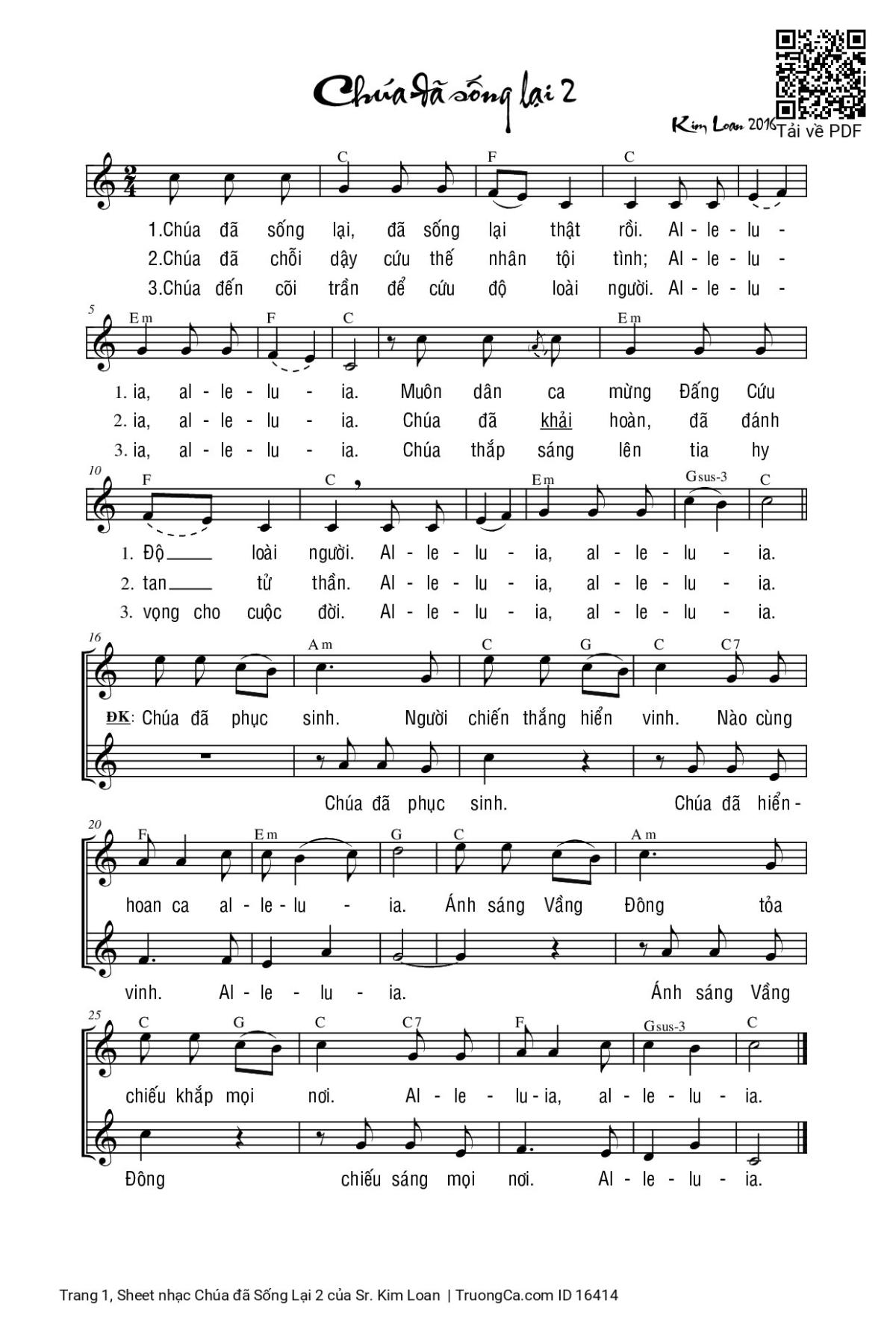 Sheet PDF with the same name Chúa đã Sống Lại 2: