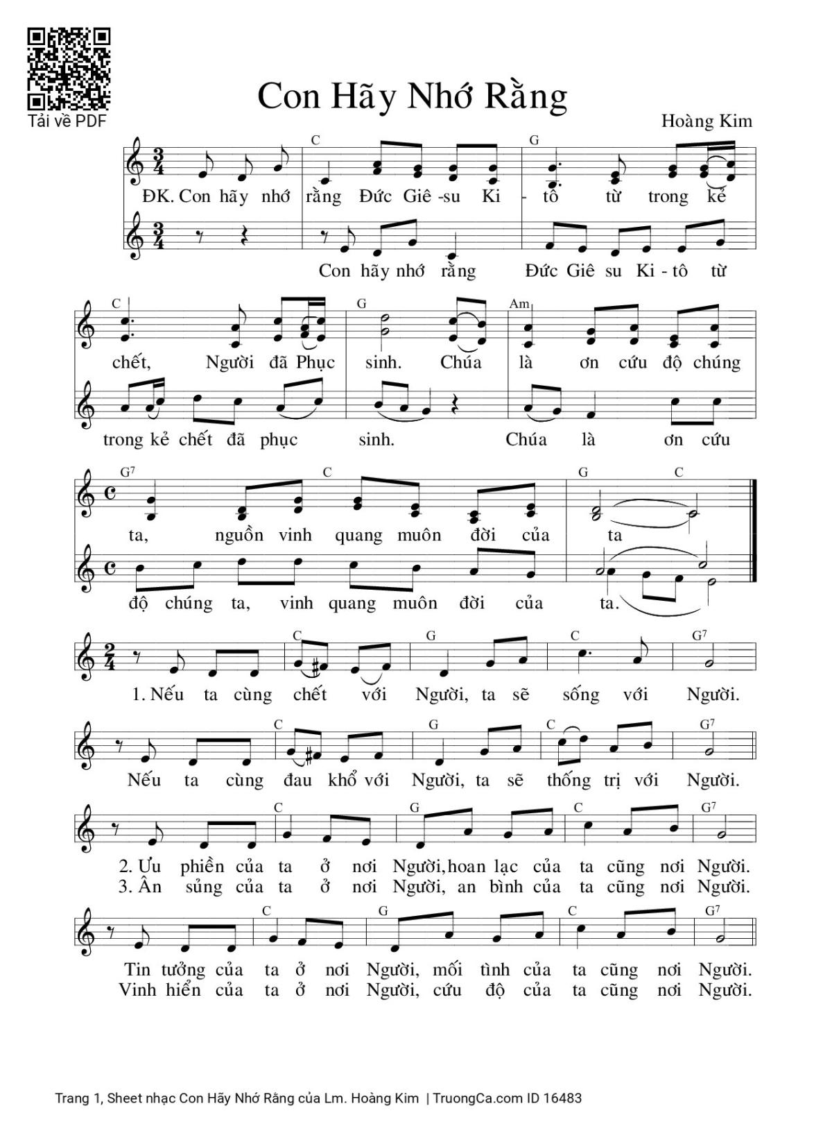 Sheet PDF with the same name Con Hãy Nhớ Rằng: