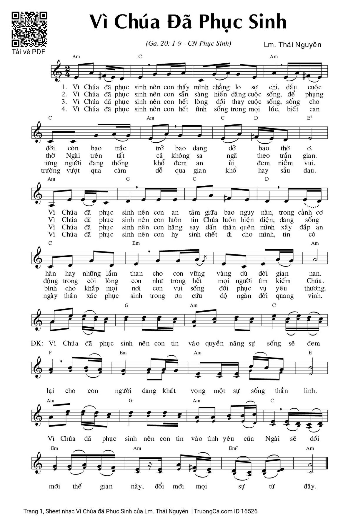 Sheet PDF with the same name Vì Chúa đã Phục Sinh: