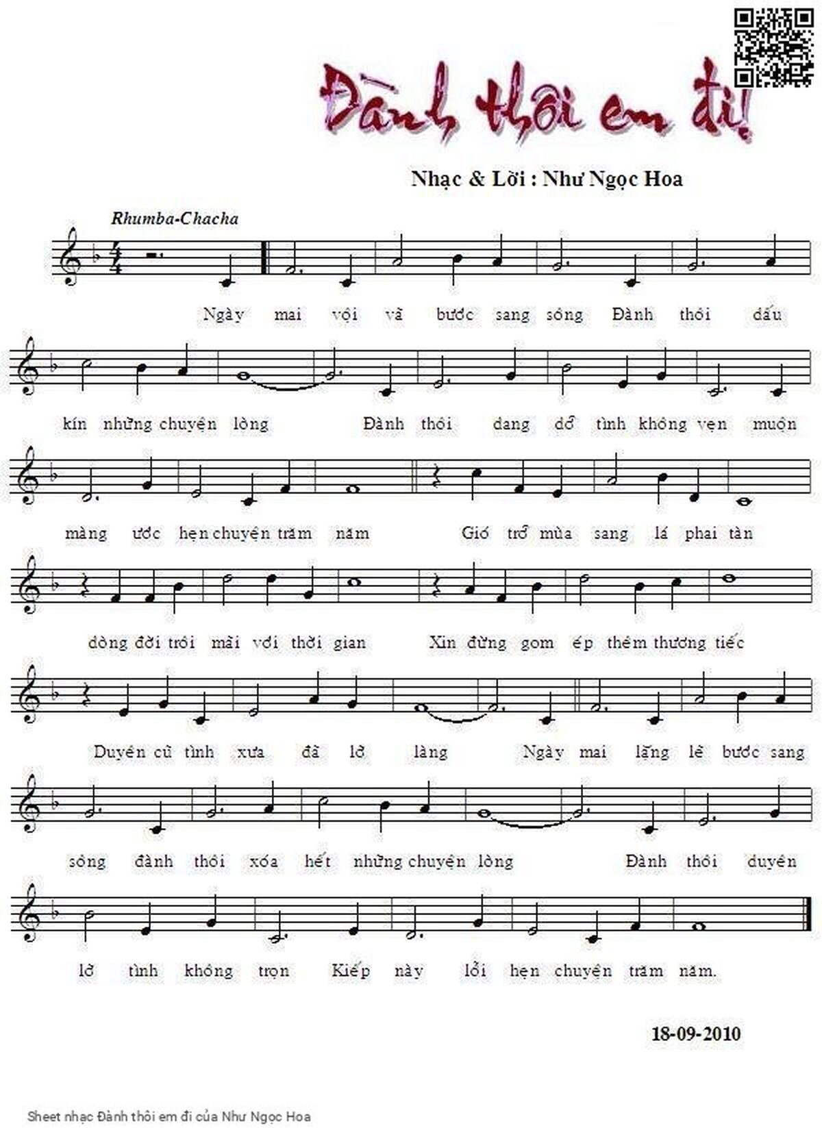 Như Ngọc Hoa Ngày mai vội vã bước sang sông Đành thôi dấu kín những chuyện lòng [PDF] [Sheet] [Lyrics] [Mp4/Midi]