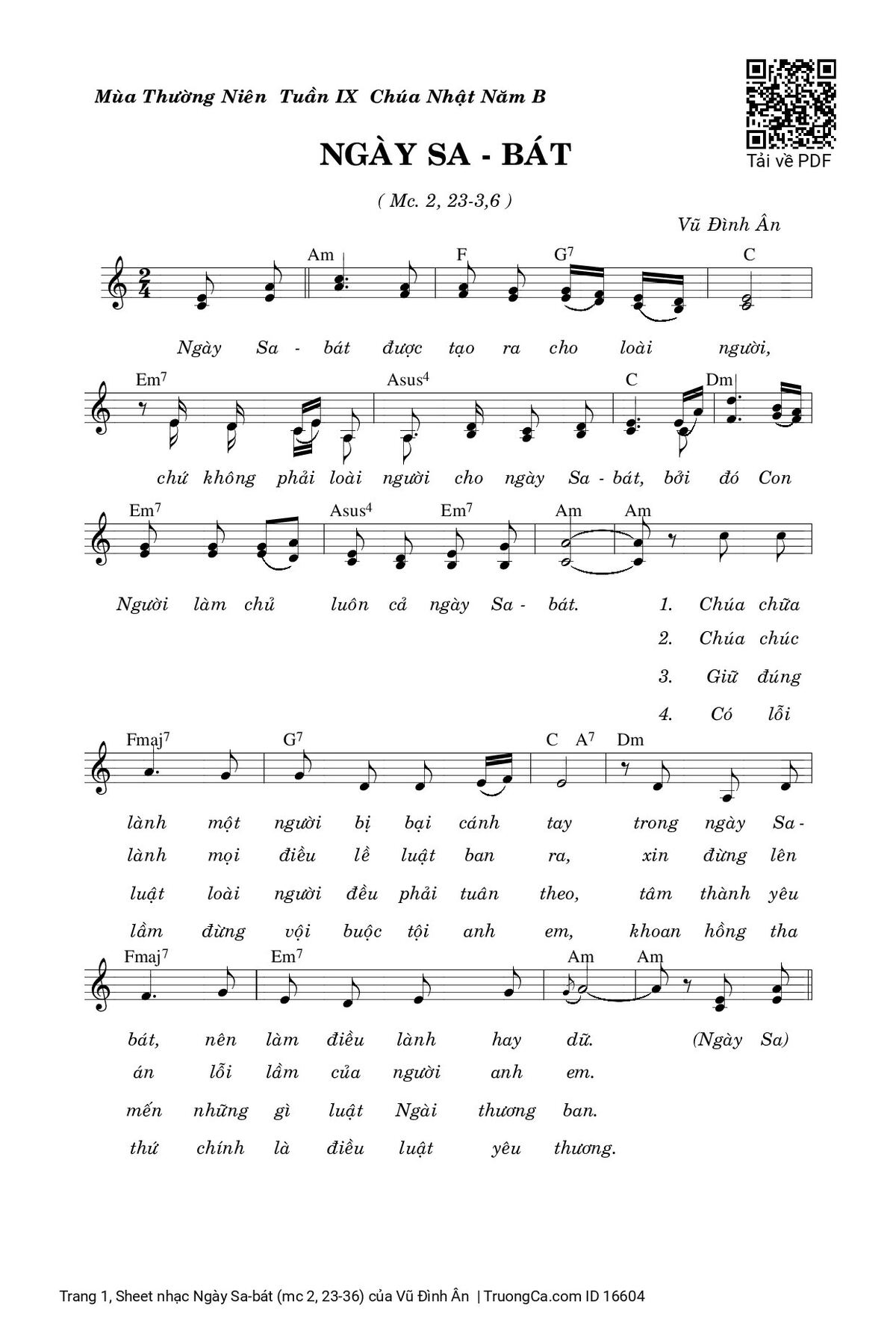 Điệp khúc. Ngày Sa-bát được tạo ra cho loài người, chứ không phải loài người cho ngày Sa-bát, bởi đó Con Người làm chủ luôn cả ngày Sa-bát.