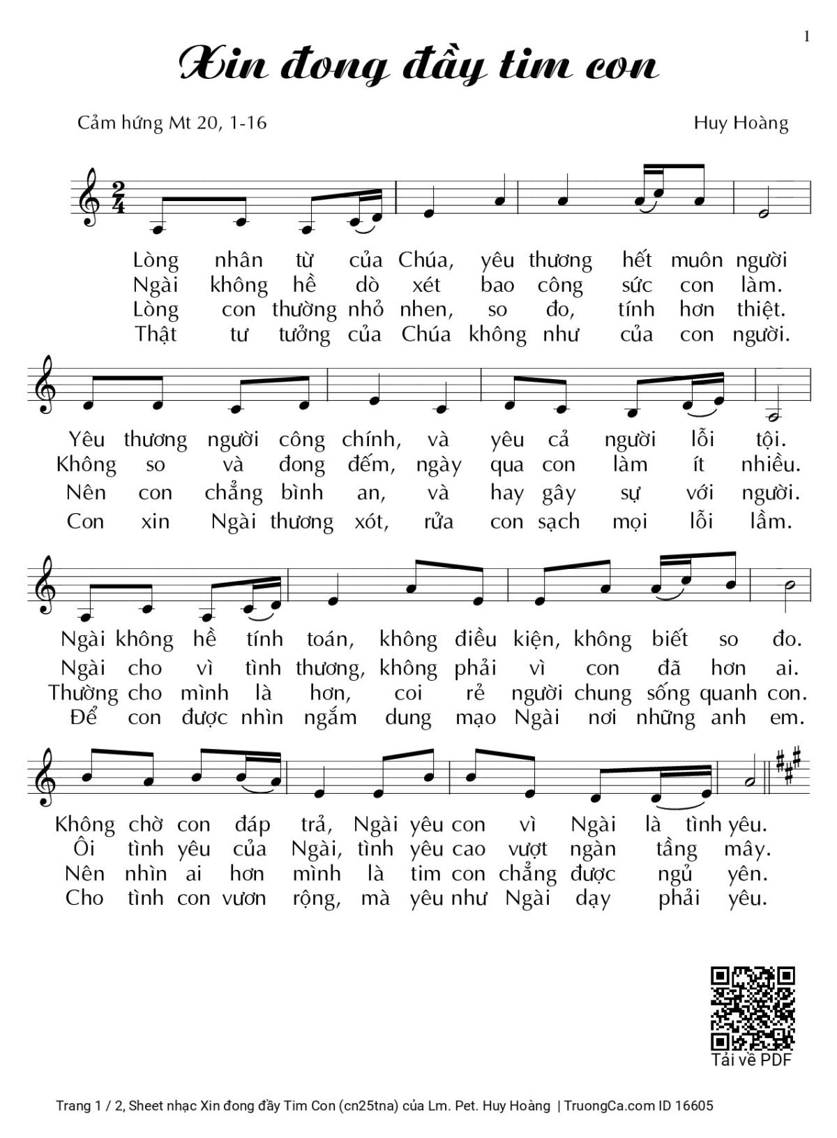 More similar sheets PDF Xin đong đầy Tim Con (cn25tna):
