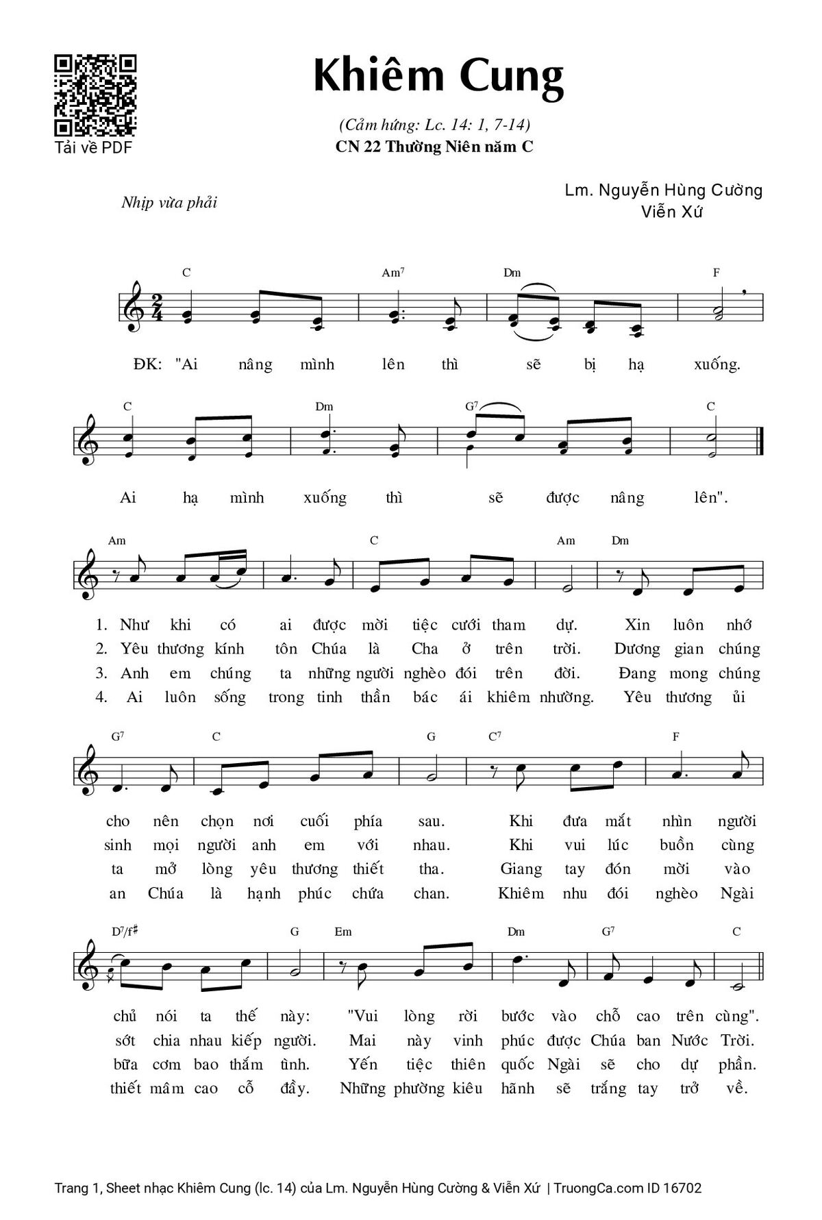 More similar sheets PDF Khiêm Cung (lc. 14):