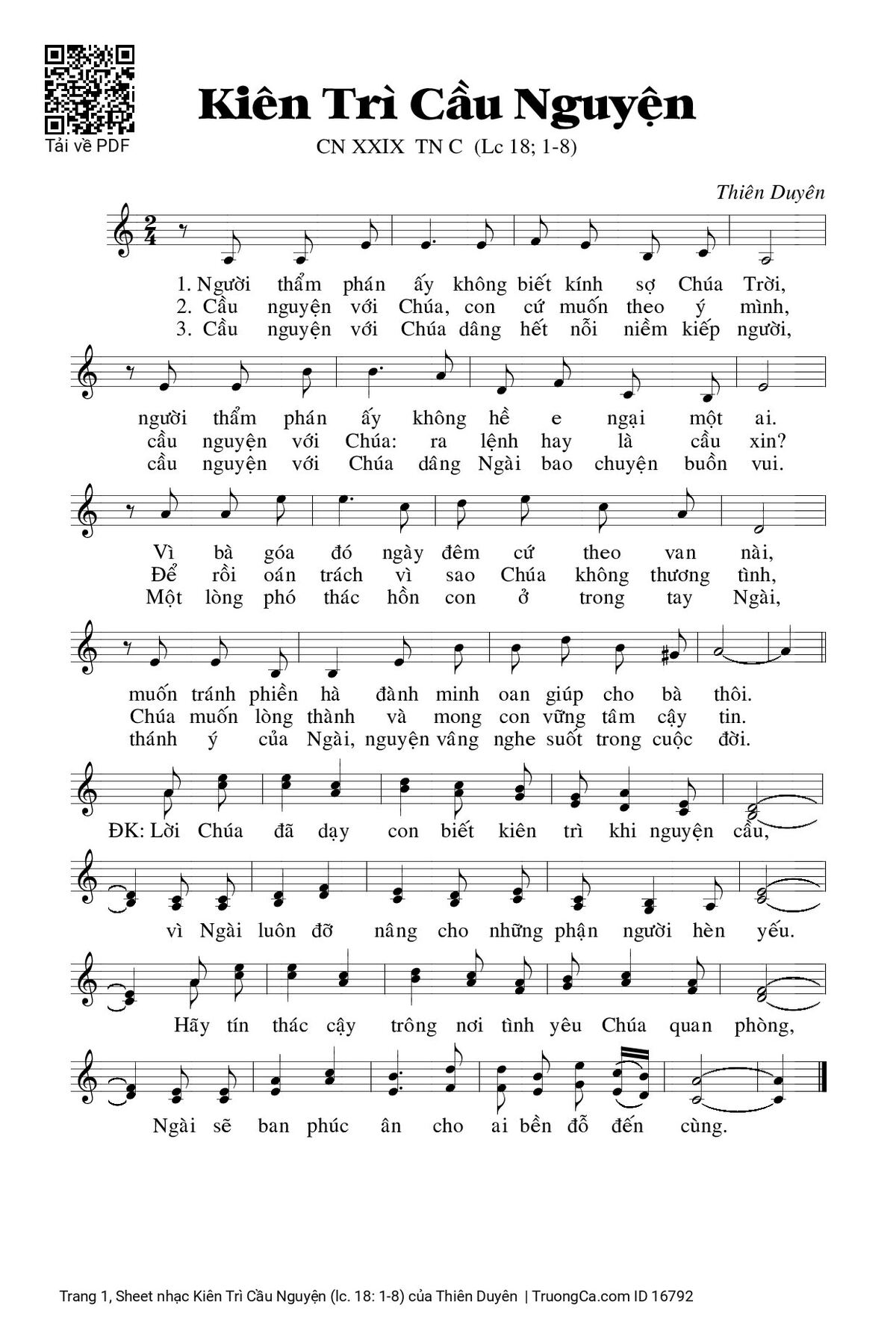 Điệp khúc. Lời Chúa đã dạy con biết kiên trì khi nguyện cầu. Vì Ngài luôn đỡ nâng cho những phận người hèn yếu. Hãy tín thác cậy trông nơi tình yêu Chúa quan phòng. Ngài sẽ ban phúc ân cho ai bền đỗ đến cùng.