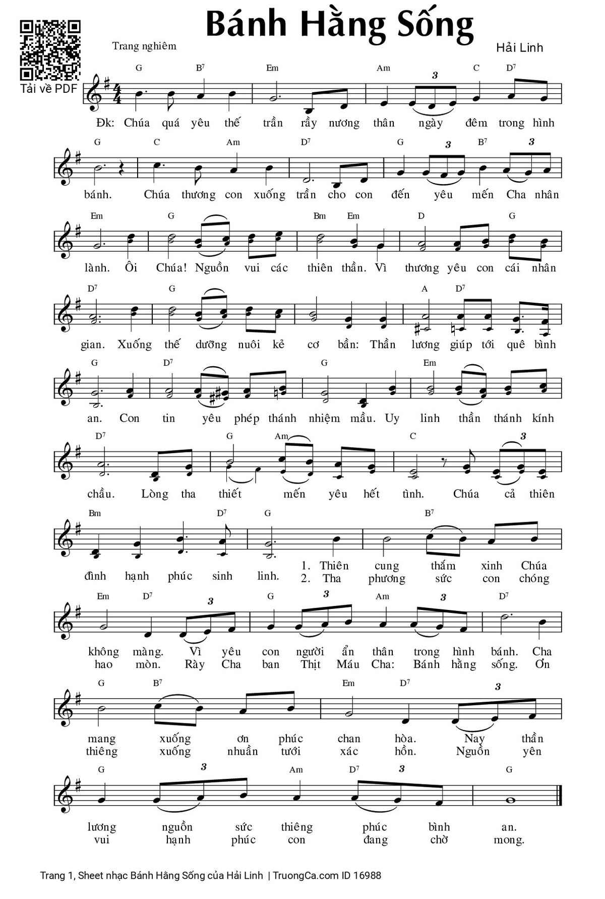 The first sentence: BÁNH HẰNG SỐNG Hải Linh ÐK Chúa quá yêu thế trần