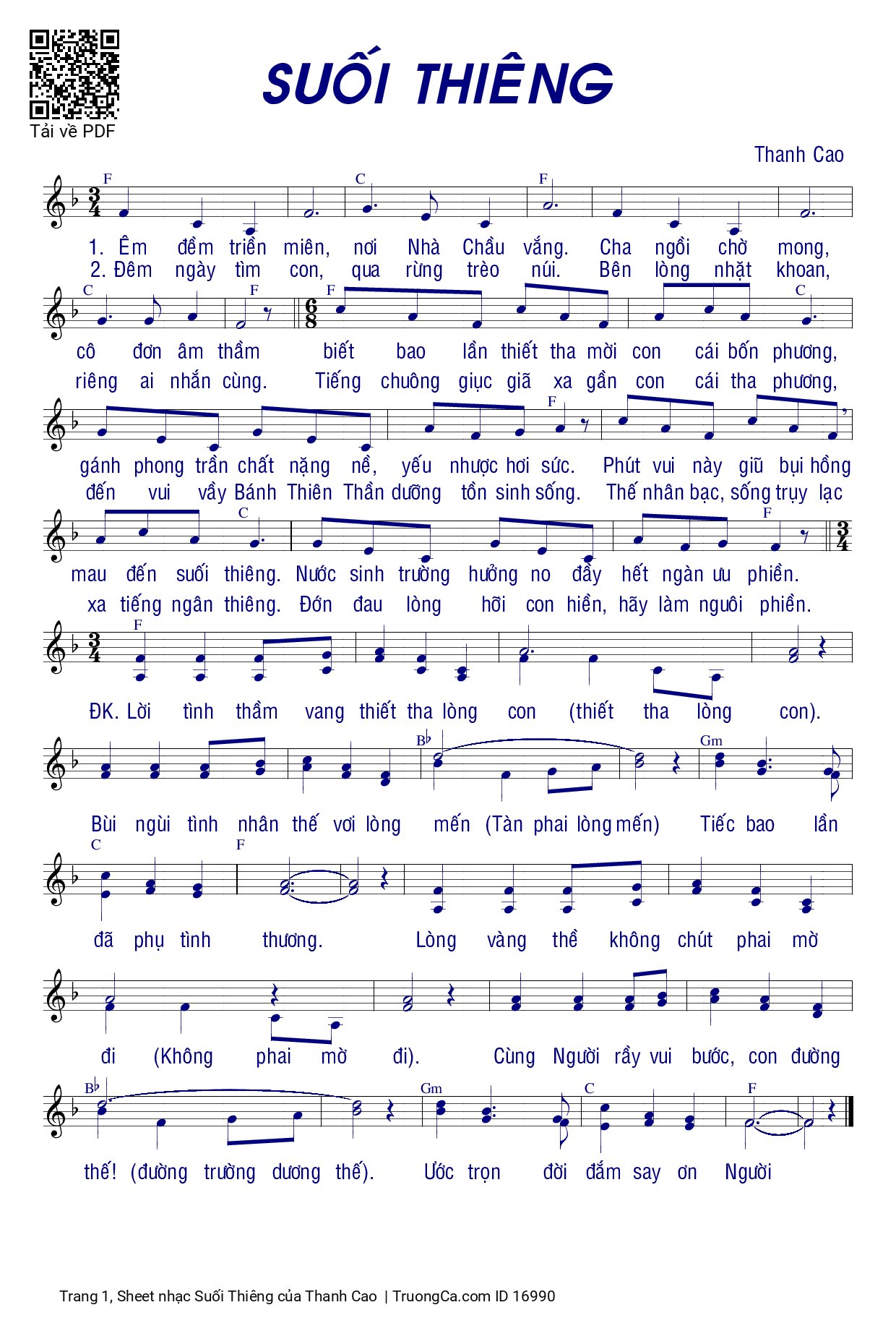 Transposition is the process of moving a song's melody and chords up or down in pitch by a constant interval. The direction of the transposition tool is indicated by a plus (+) sign for up and a minus (-) sign for down. Hover mouse over chords signs to see the chords chart of Suối Thiêng song.