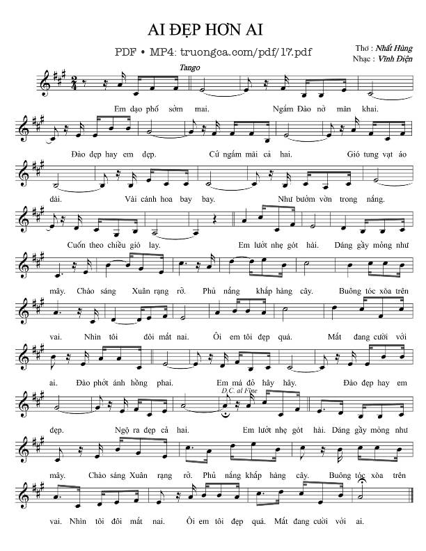 Vĩnh Điện Em dạo phố sớm mai Ngắm đào nở mãn khai [PDF] [Sheet] [Lyrics] [Mp4/Midi]