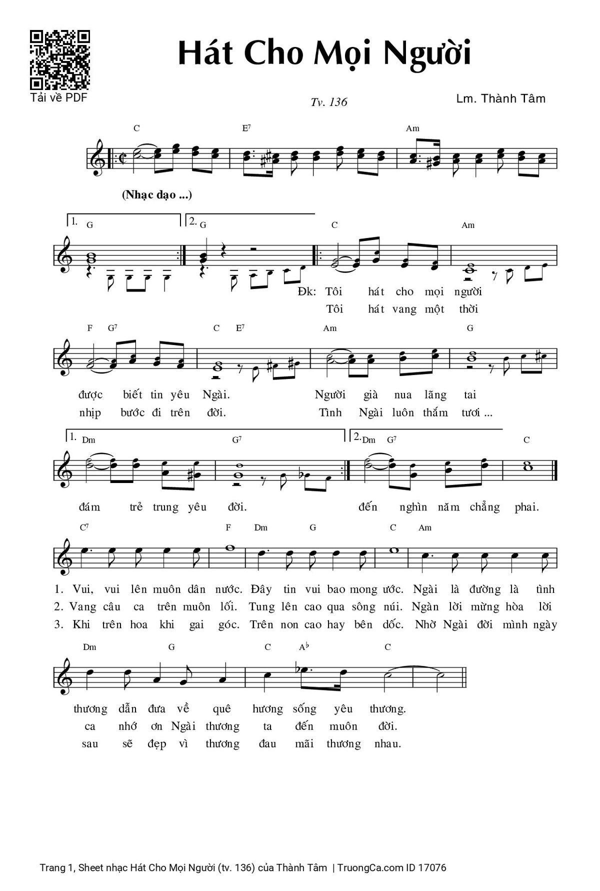 More similar sheets PDF Hát Cho Mọi Người (tv. 136):