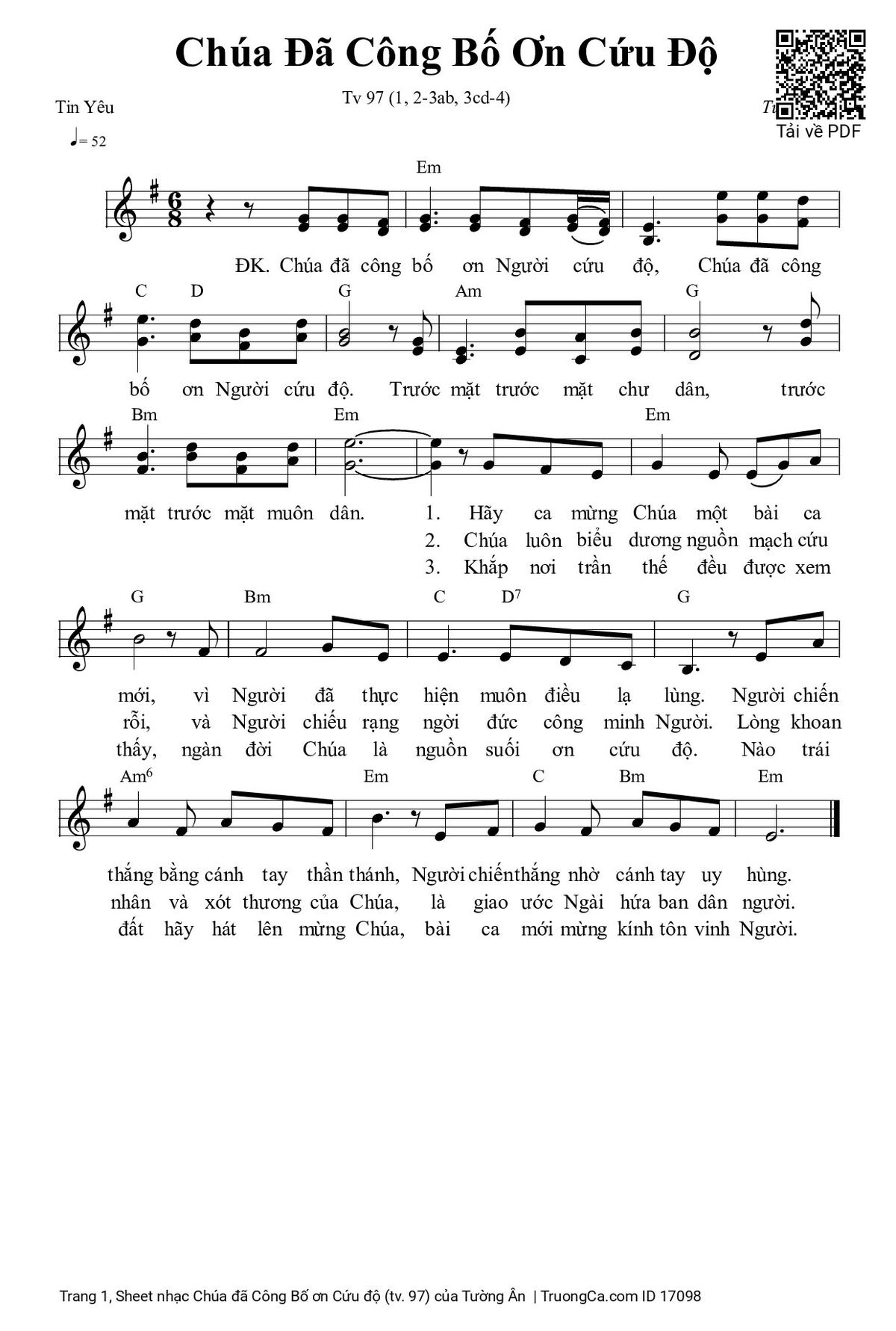 More similar sheets PDF Chúa đã Công Bố ơn Cứu độ (tv. 97):