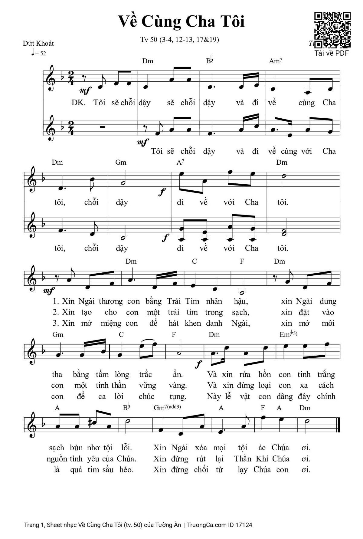 1. Xin Ngài thương con bằng trái tim nhân hậu. Xin Ngài dung tha bằng tấm lòng trắc ẩn. Vad xin rửa hồn con tinh trắng sạch bùn nhơ tội lỗi. Xin Ngài xóa mọi tội ác Chúa ơi!