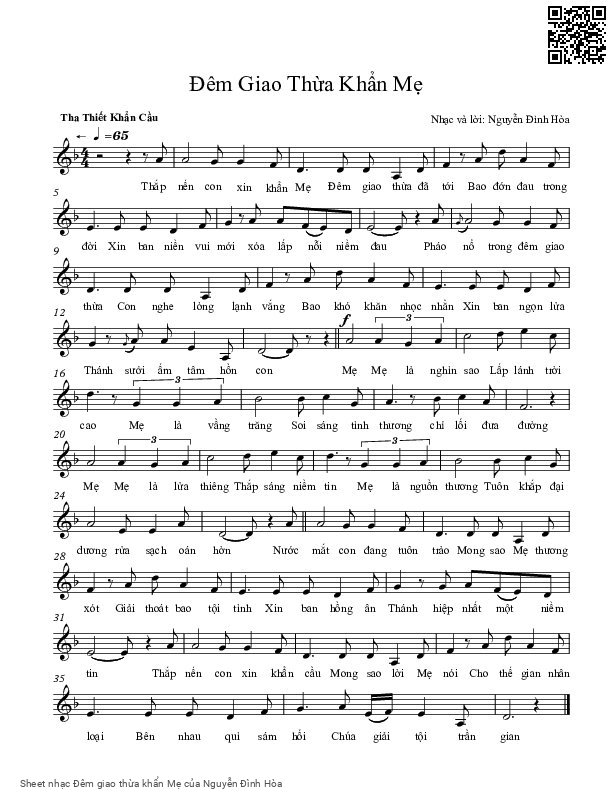 Nguyễn Đình Hòa Thắp nến con xin khấn Mẹ Đêm giao thừa đã tới [PDF] [Sheet] [Lyrics] [Mp4/Midi]
