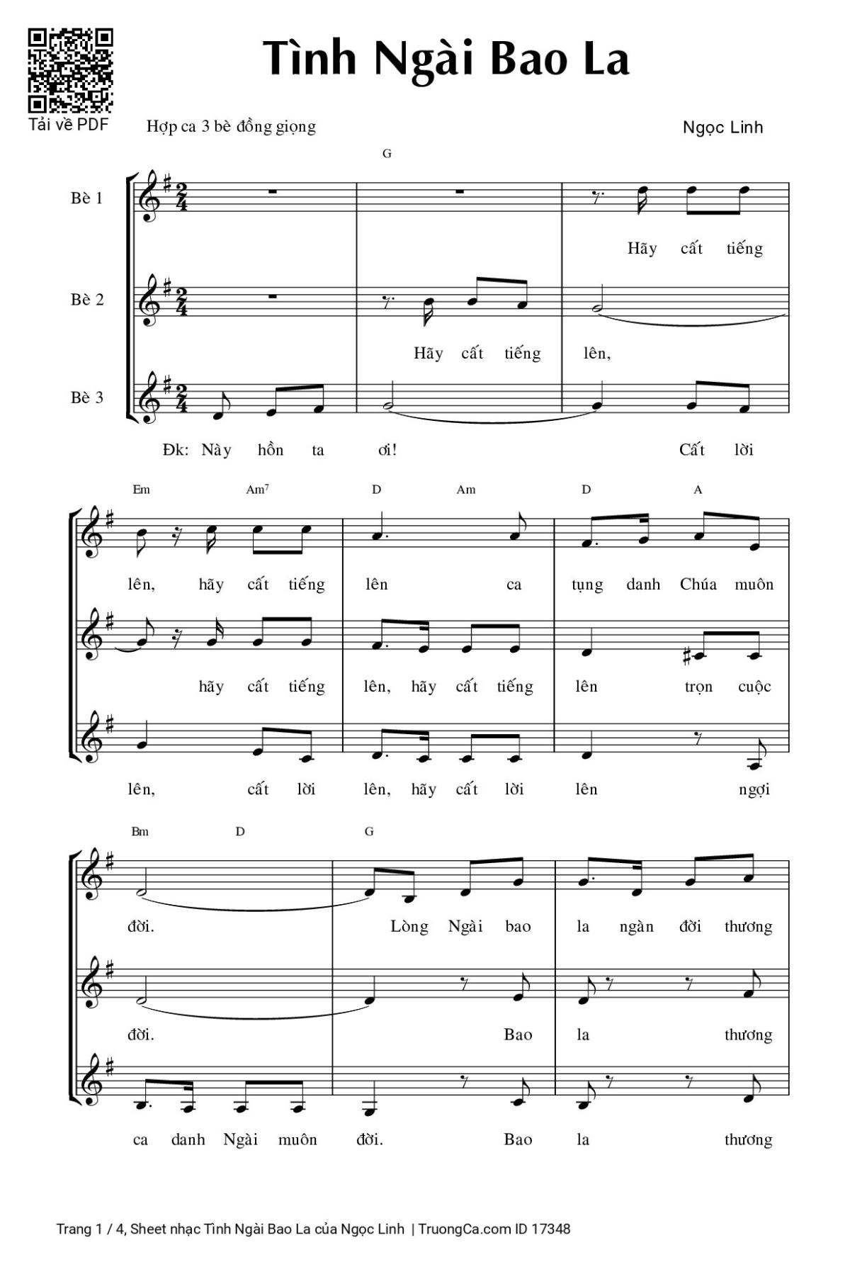 Điệp khúc. Hãy cất tiếng lên, hãy cất tiếng lên ca tụng danh Chúa muôn đời . Lòng Ngài bao la ngàn đời thương ta ban nguồn ơn phúc xây đắp nơi ta muôn vàn ước mơ. Như làn gió lao xao . Như triều sóng dâng cao dạt dào tiếng hát ca tình là tình yêu Chúa, Chúa ơi! Đời con xin hiến dâng Ngài .