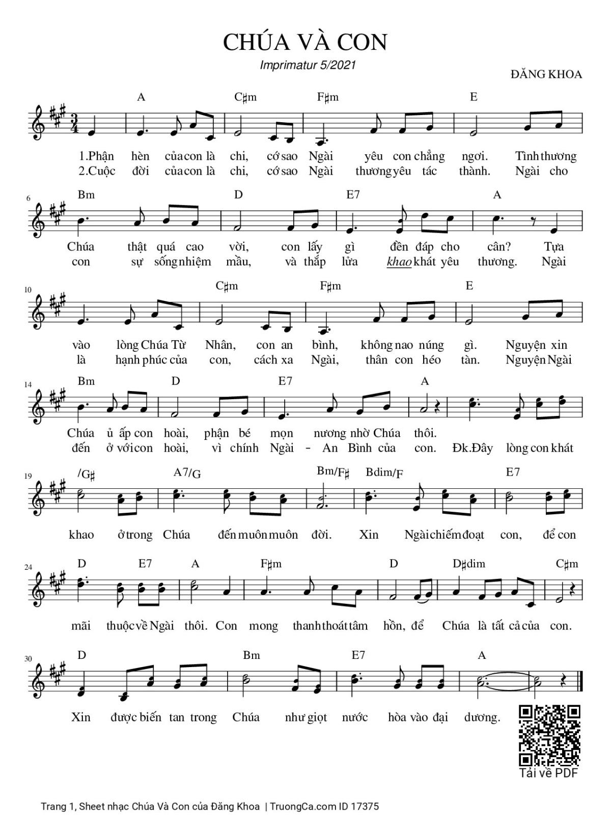 Transposition is the process of moving a song's melody and chords up or down in pitch by a constant interval. The direction of the transposition tool is indicated by a plus (+) sign for up and a minus (-) sign for down. Hover mouse over chords signs to see the chords chart of Chúa Và Con song.