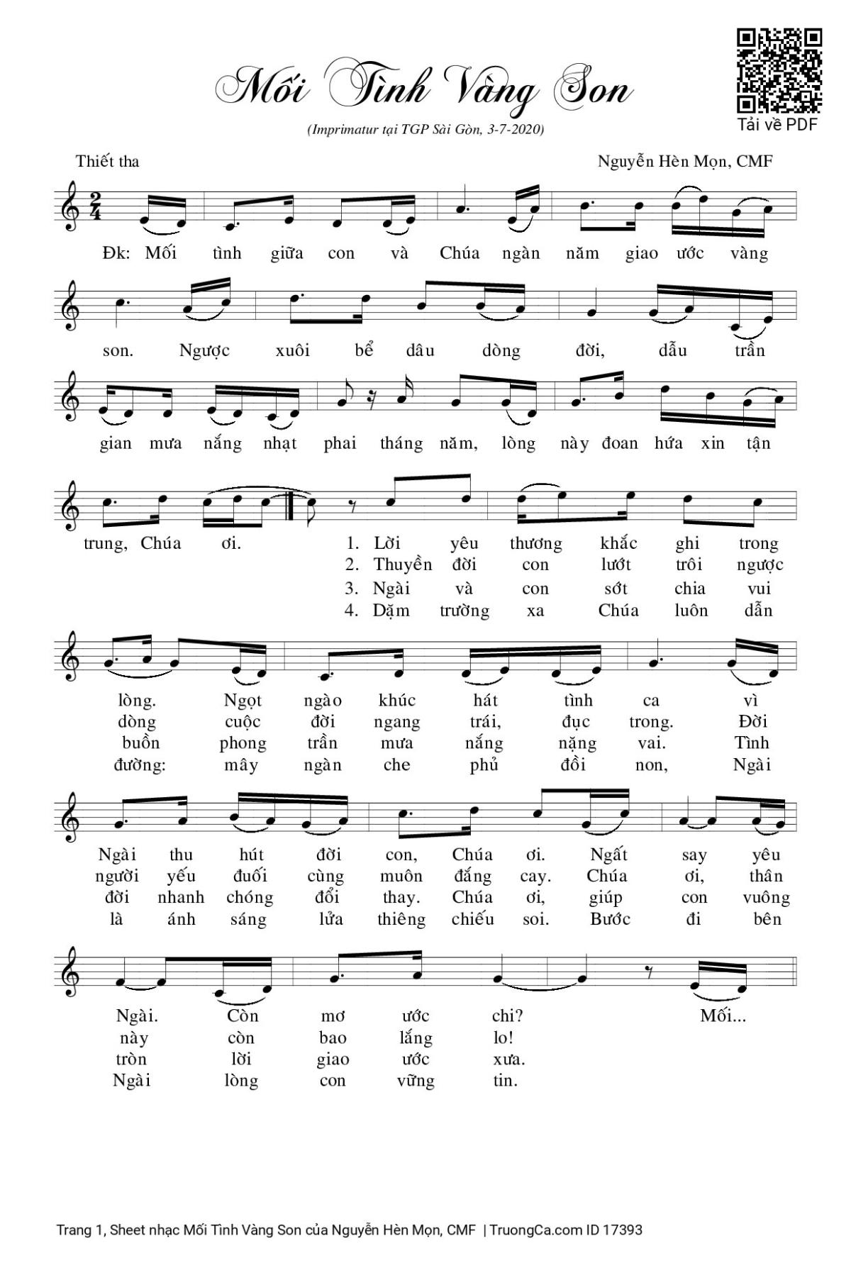 Điệp khúc. Mối tình giữa con và Chúa ngàn năm giao ước vàng son. Ngược xuôi bể dâu dòng đời, dẫu trần gian mưa nắng nhạt phai tháng năm, lòng này đoan hứa xin tận trung, Chúa ơi.