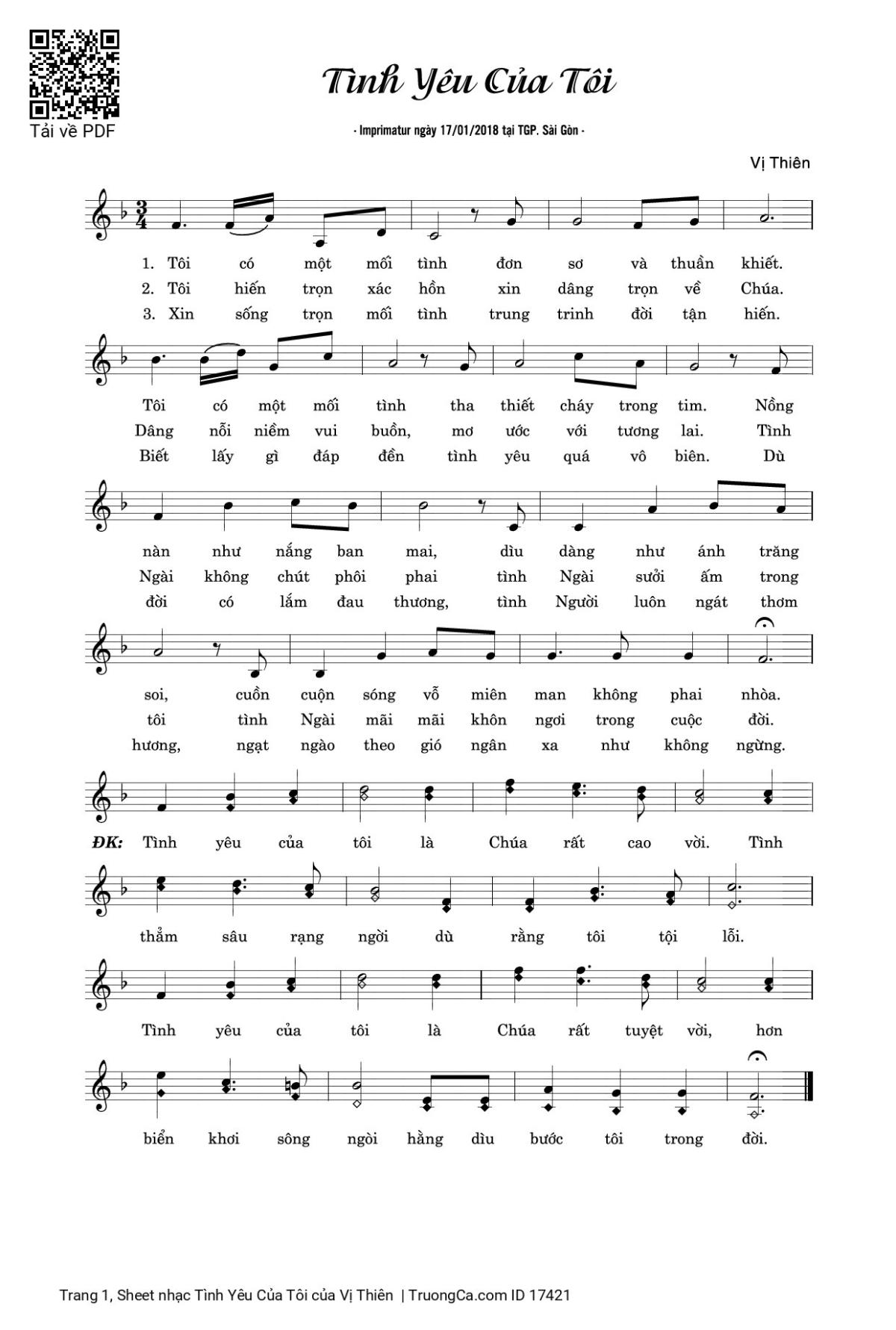 Điệp khúc. Tình yêu của tôi là Chúa rất cao vời. Tình thẳm sâu rạng ngời dù rằng tôi tội lỗi. Tình yêu của tôi là Chúa rất tuyệt vời, hơn biển khơi sông ngòi hằng dìu bước tôi trong đời.