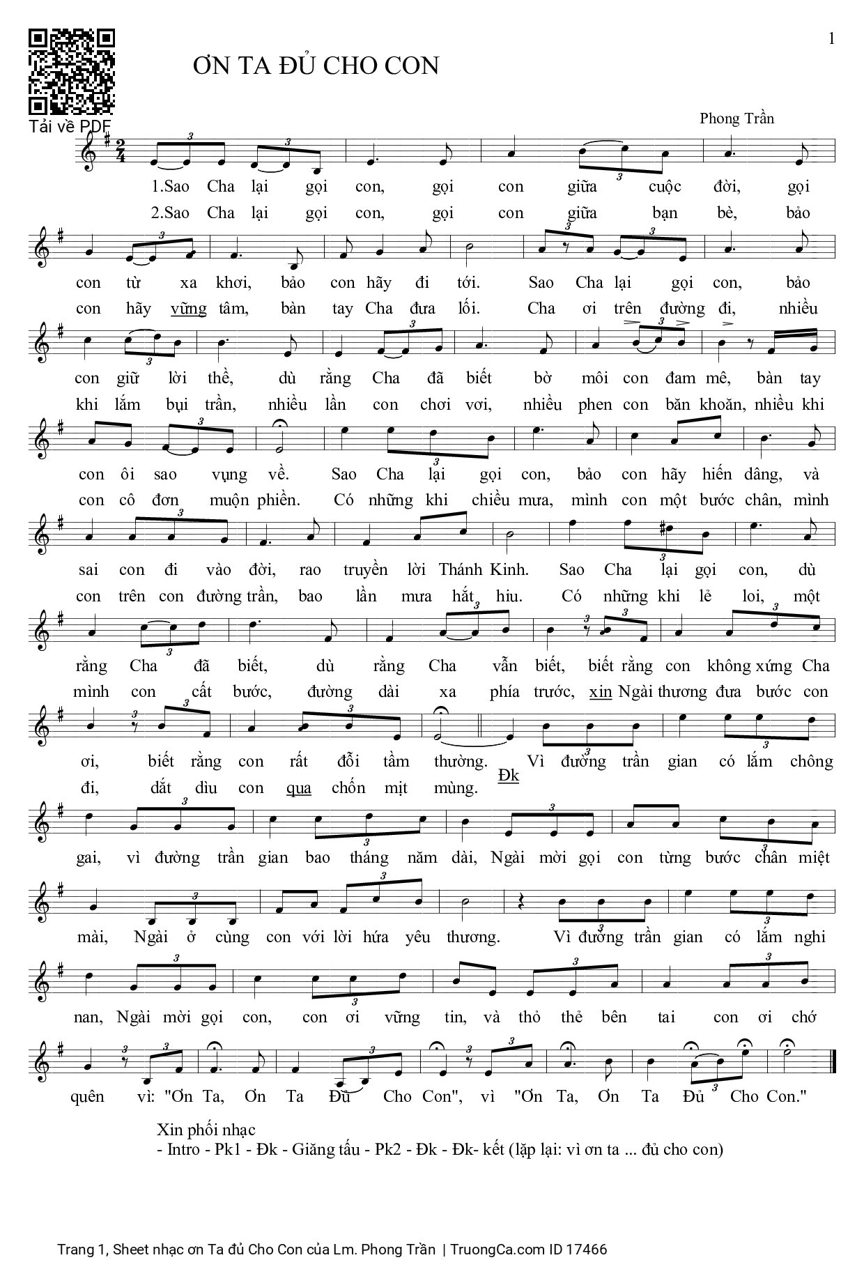 More similar sheets PDF ơn Ta đủ Cho Con: