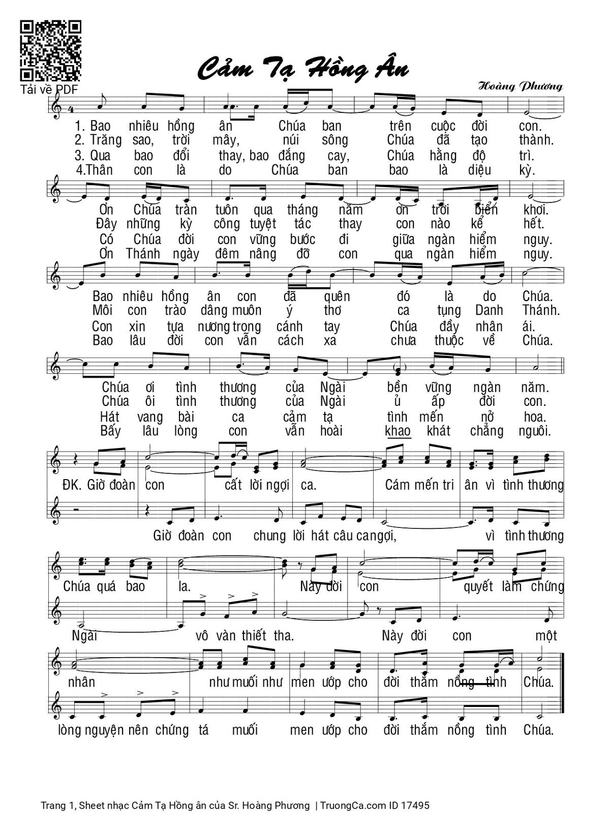 Sheet PDF with the same name Cảm Tạ Hồng ân: