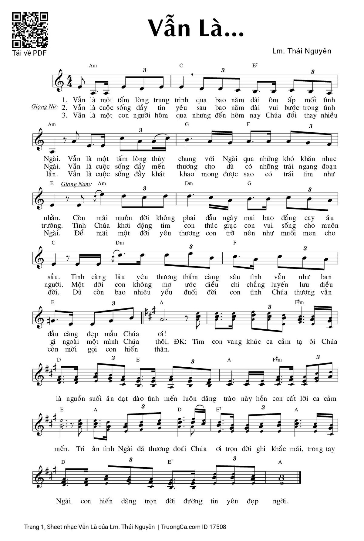 Transposition is the process of moving a song's melody and chords up or down in pitch by a constant interval. The direction of the transposition tool is indicated by a plus (+) sign for up and a minus (-) sign for down. Hover mouse over chords signs to see the chords chart of Vẫn Là song.