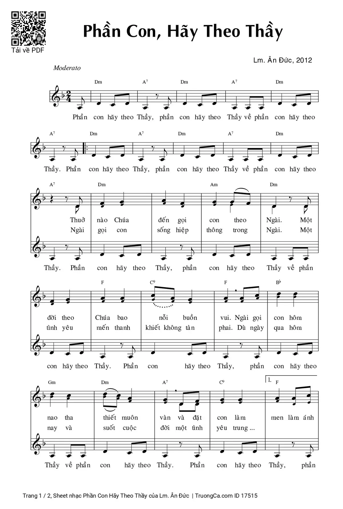 More similar sheets PDF Phần Con Hãy Theo Thầy:
