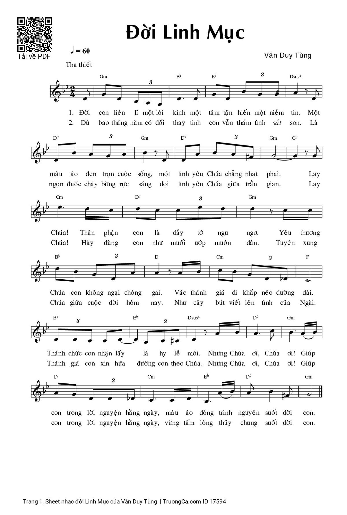 Transposition is the process of moving a song's melody and chords up or down in pitch by a constant interval. The direction of the transposition tool is indicated by a plus (+) sign for up and a minus (-) sign for down. Hover mouse over chords signs to see the chords chart of đời Linh Mục song.