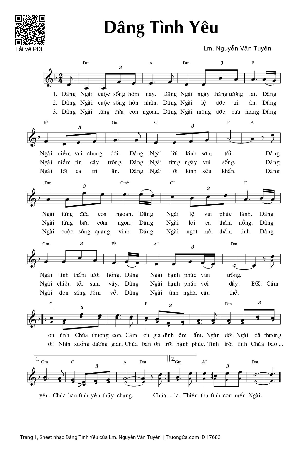Transposition is the process of moving a song's melody and chords up or down in pitch by a constant interval. The direction of the transposition tool is indicated by a plus (+) sign for up and a minus (-) sign for down. Hover mouse over chords signs to see the chords chart of Dâng Tình Yêu song.