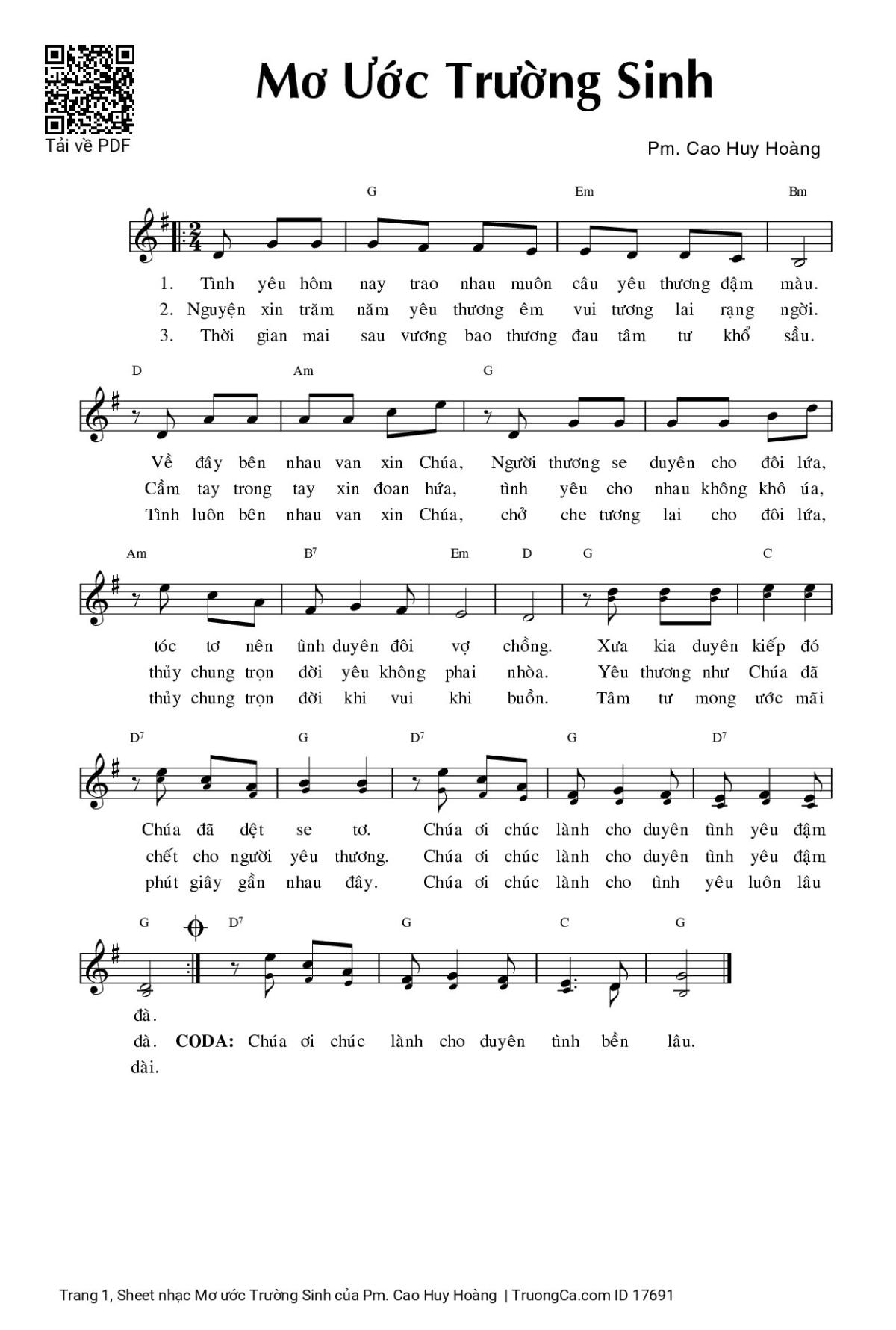 Transposition is the process of moving a song's melody and chords up or down in pitch by a constant interval. The direction of the transposition tool is indicated by a plus (+) sign for up and a minus (-) sign for down. Hover mouse over chords signs to see the chords chart of Mơ ước Trường Sinh song.