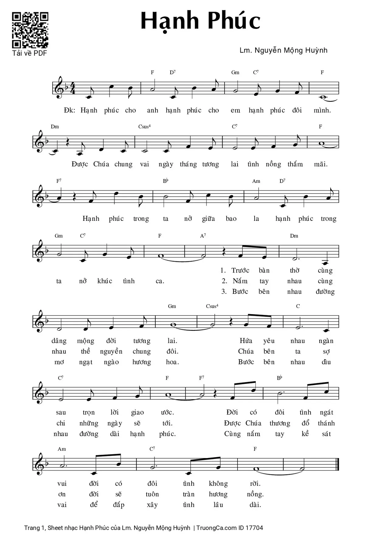 Điệp khúc. Hạnh phúc cho anh hạnh phúc cho em hạnh phúc đôi mình. Được Chúa chung vai ngày tháng tương lai tình nồng thắm mãi. Hạnh phúc trong ta nở giữa bao la, hạnh phúc trong ta nơa