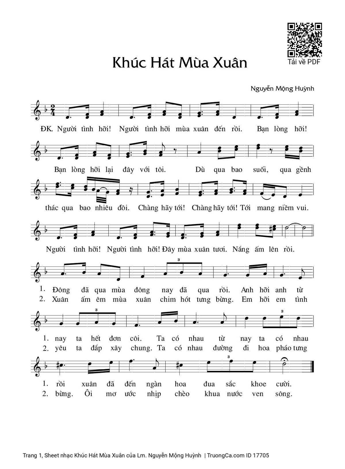 Sheet PDF with the same name Khúc Hát Mùa Xuân: