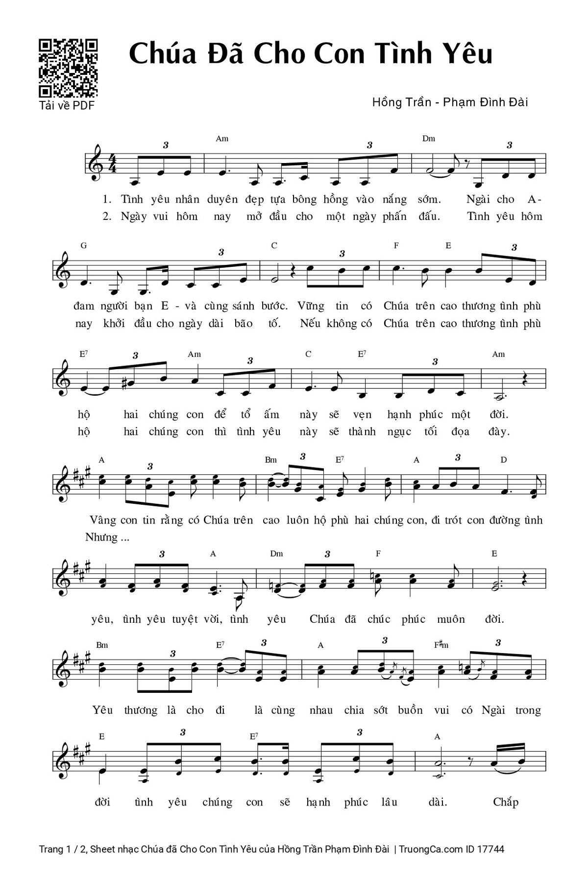 More similar sheets PDF Chúa đã Cho Con Tình Yêu: