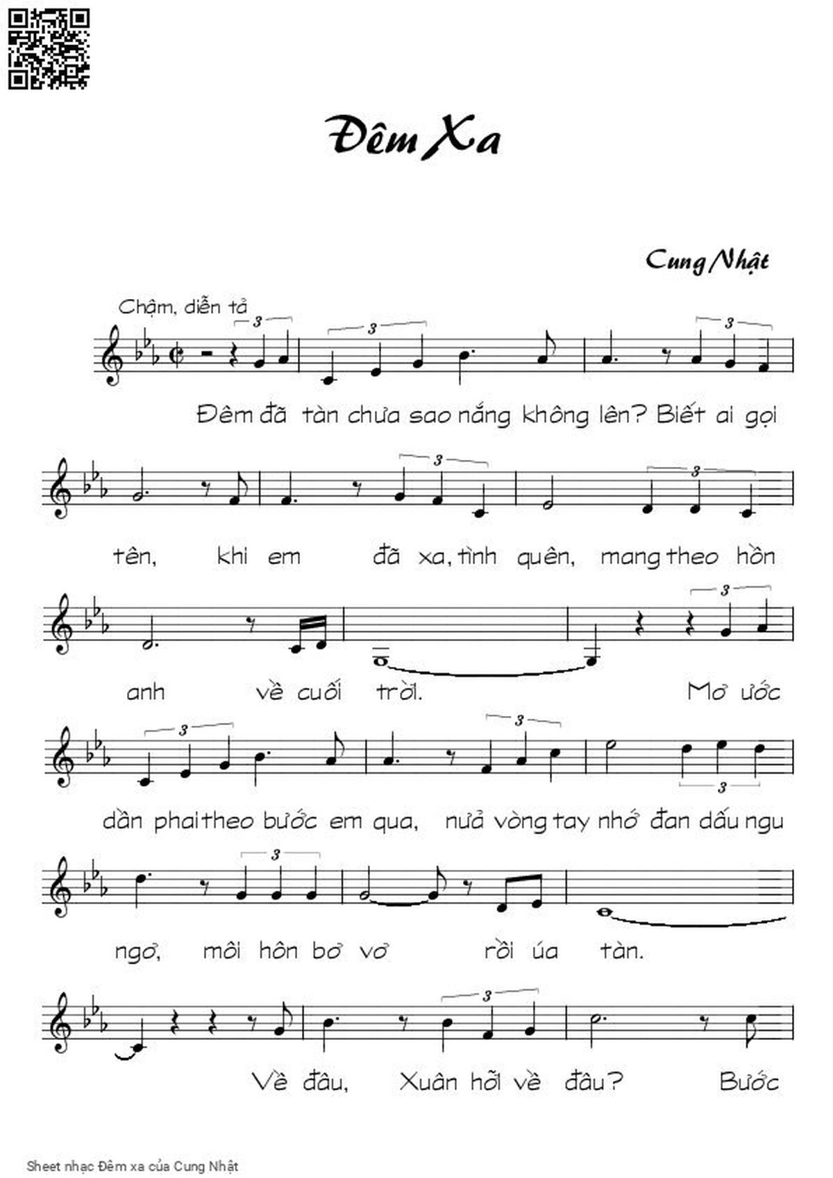 Transposition is the process of moving a song's melody and chords up or down in pitch by a constant interval. The direction of the transposition tool is indicated by a plus (+) sign for up and a minus (-) sign for down. Hover mouse over chords signs to see the chords chart of Đêm xa song.