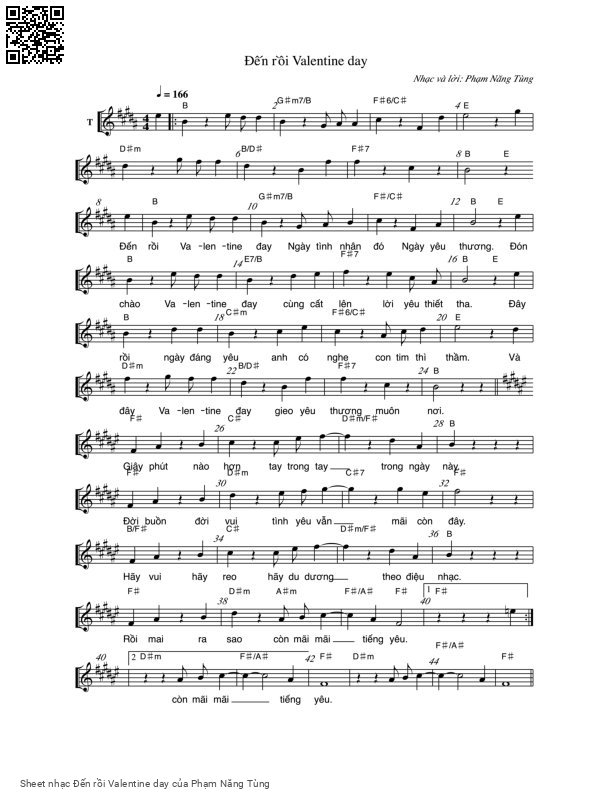 Phạm Năng Tùng Đến rồi Valentine day Ngày tình nhân đó ngày yêu thương [PDF] [Sheet] [Lyrics] [Mp4/Midi]