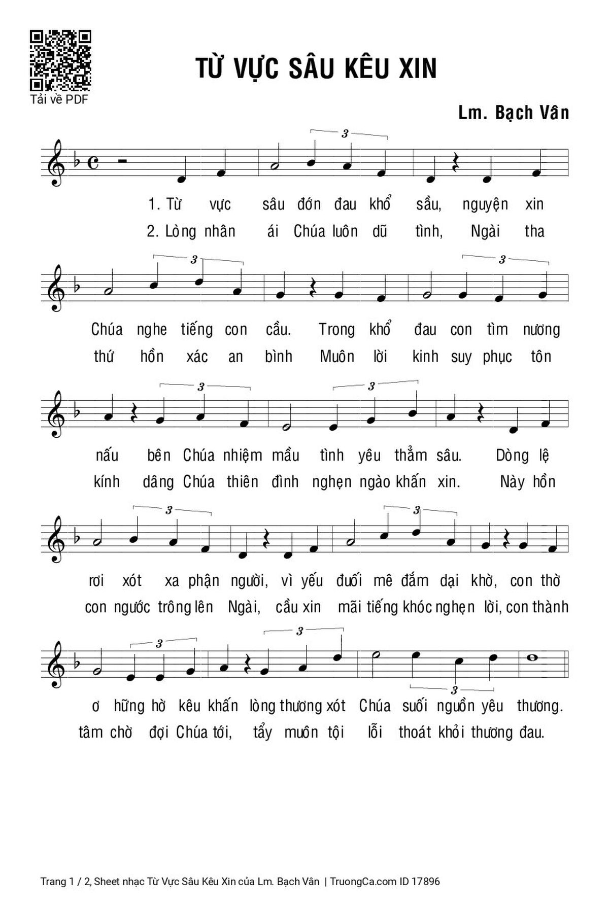 1. Từ vực sâu đớn đau khổ sầu, nguyện xin Chúa nghe tiếng con cầu. Trong khổ đau con tìm nương náu, bên Chúa nhiệm mầu tình yêu thẳm sâu. Dòng lệ rơi xót xa phận người, vì yếu đuối mê đắm dại khờ, con thờ ơ hững hờ kếu khấn, lòng thương xót Chúa suối nguồn yêu thương.