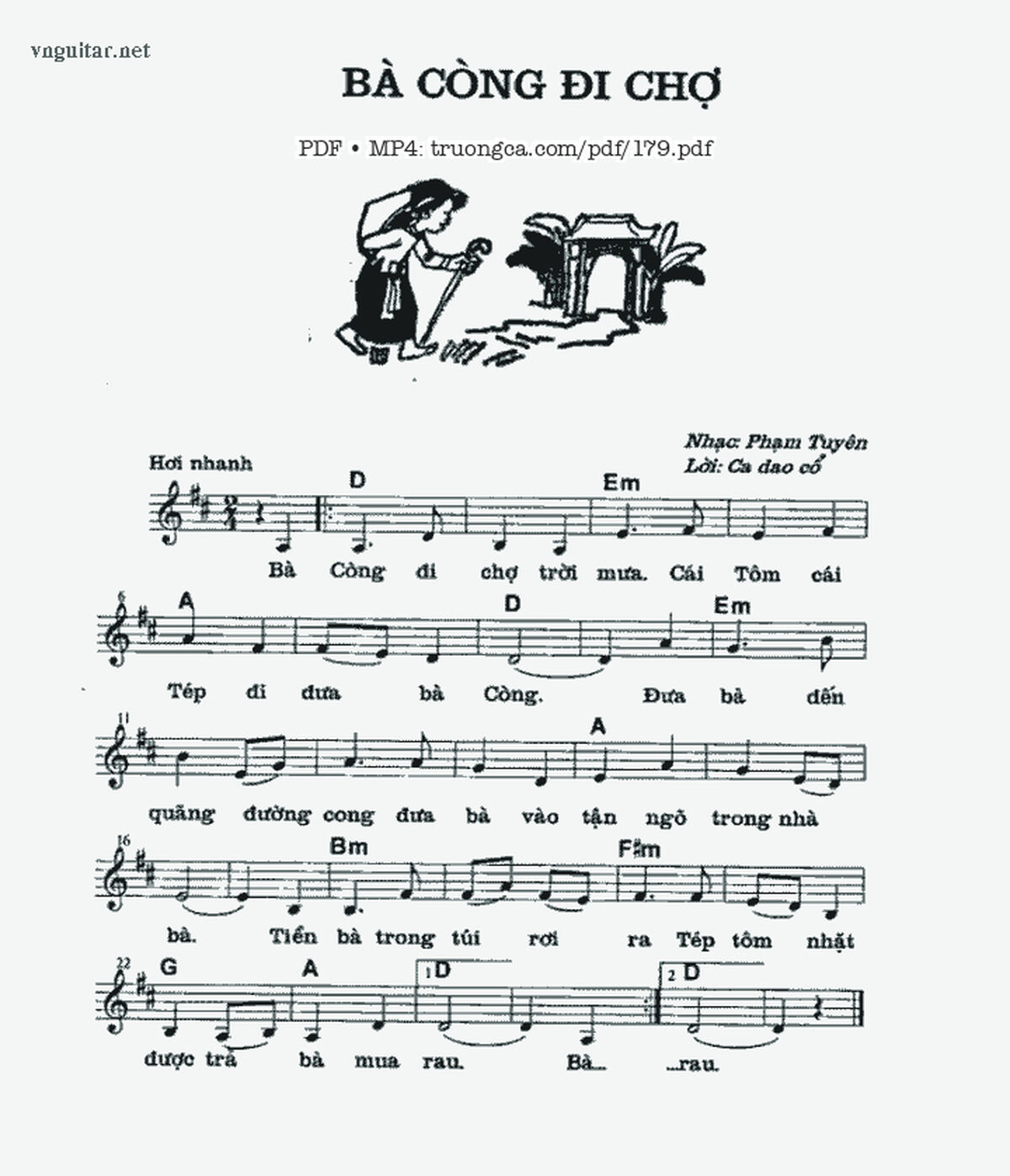 Phạm Tuyên Bà còng đi chợ trời mưa Cái tôm cái tép đi đưa bà còng [PDF] [Sheet] [Lyrics] [Mp4/Midi]