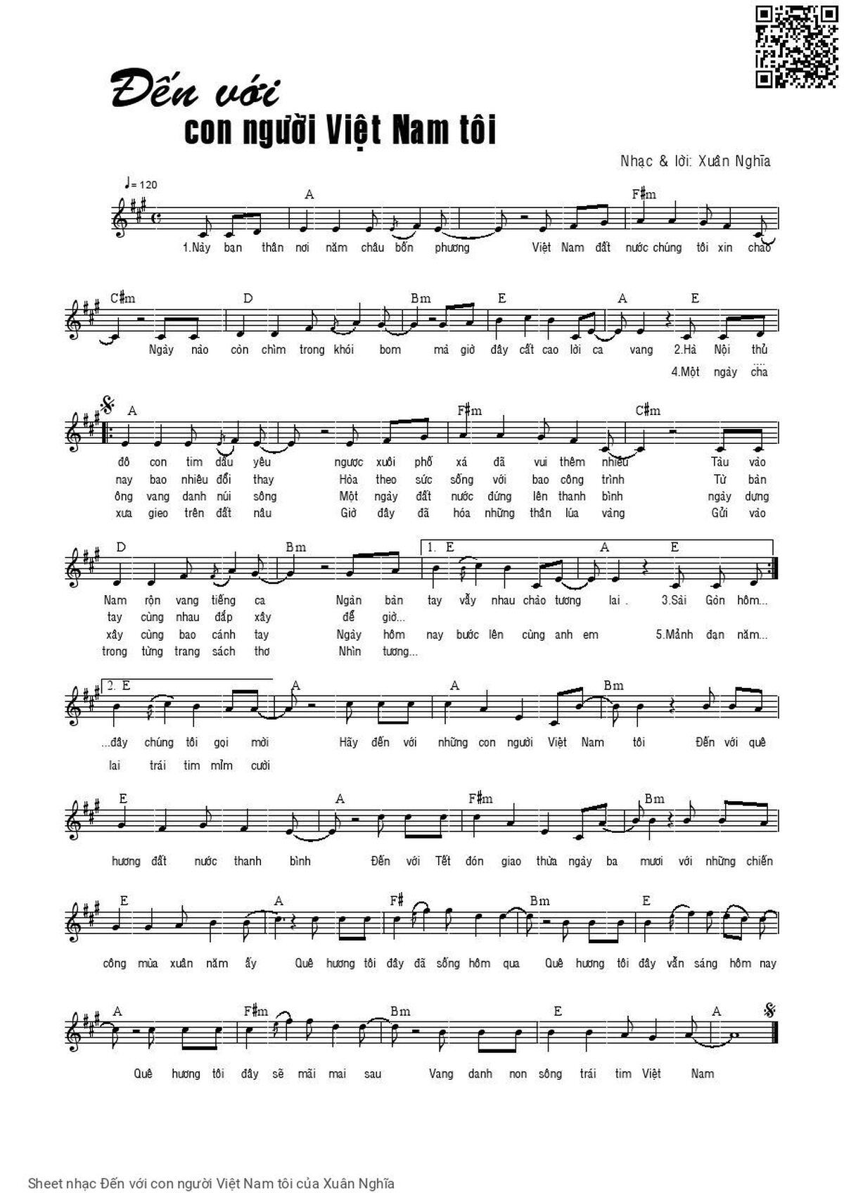 Xuân Nghĩa Này bạn thân ơi năm châu bốn phương Việt Nam đất nước chúng tôi xin chào [PDF] [Sheet] [Lyrics] [Mp4/Midi]
