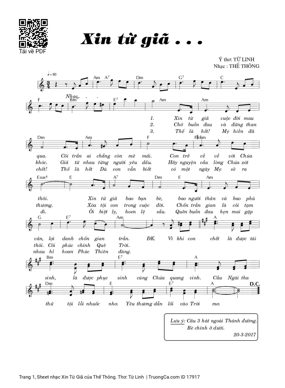 More similar sheets PDF Xin Từ Giã: