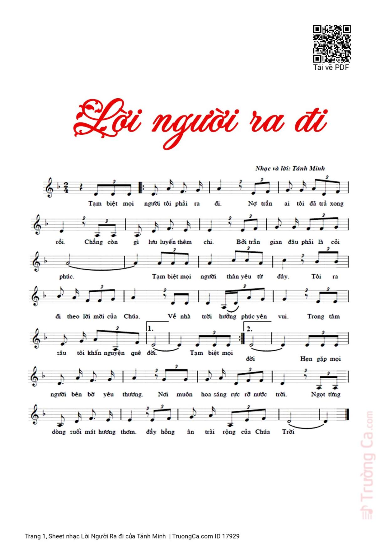 Tánh Minh Tạm biệt mọi người tôi phải ra đi [PDF] [Sheet] [Lyrics] [Mp4/Midi] [Story and comment]