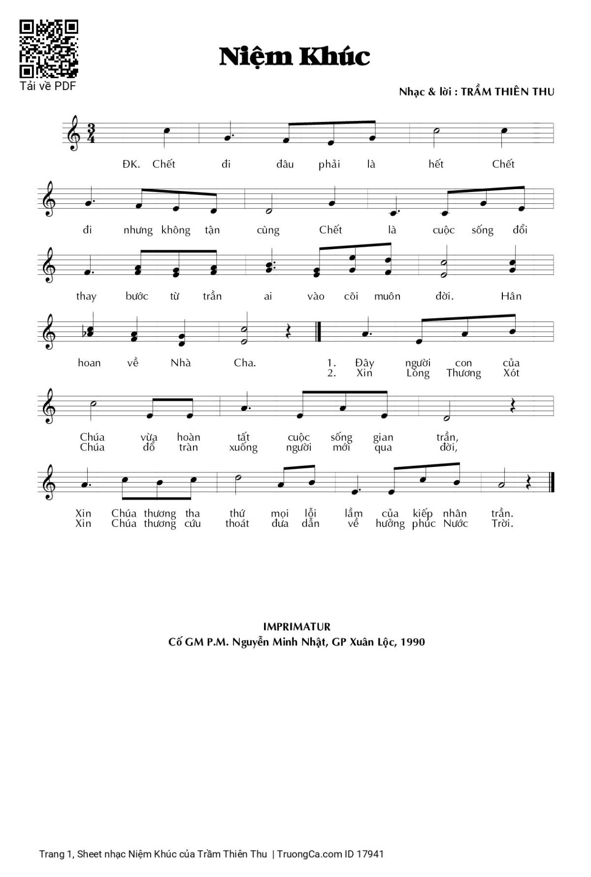 Transposition is the process of moving a song's melody and chords up or down in pitch by a constant interval. The direction of the transposition tool is indicated by a plus (+) sign for up and a minus (-) sign for down. Hover mouse over chords signs to see the chords chart of Niệm Khúc song.