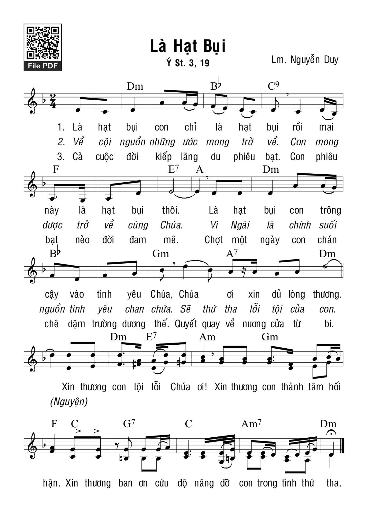 1. Là hạt bụi con chỉ là hạt bụi rồi mai này là hạt bụi thôi. Là hạt bụi con trông cậy vào tình yêu Chúa, Chúa ơi xin dủ lòng thương.