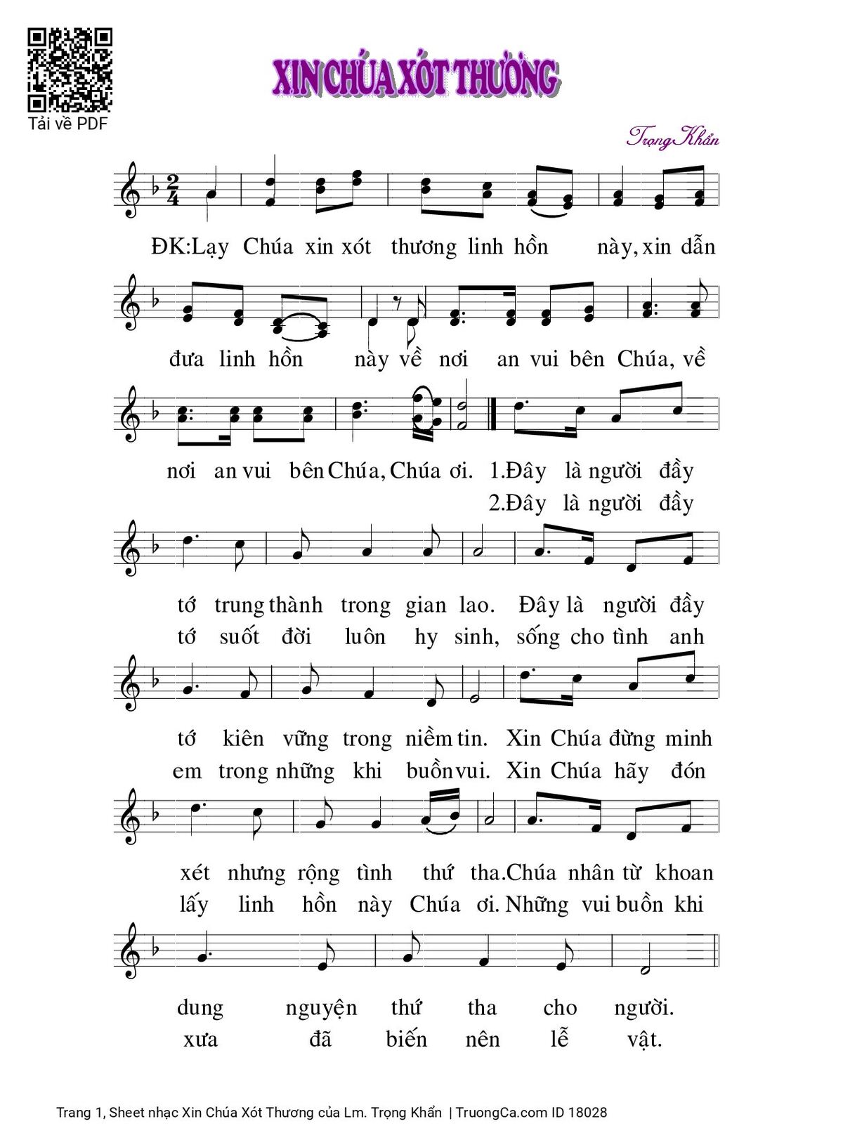 Sheet PDF with the same name Xin Chúa Xót Thương:
