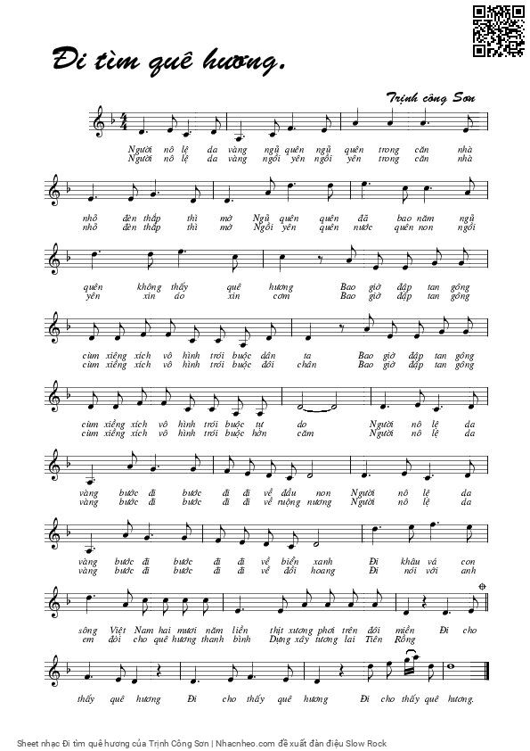 The Videos/audios Đi tìm quê hương by Trịnh Công Sơn were embed from Youtube, Musescore or the other 3rd links. Videos are subject to 3rd's copyright control and may be removed by YouTube's copyright rules and 3rd's policies or maybe included advertisements. If you cannot access to these songs, this mean that have been removed.